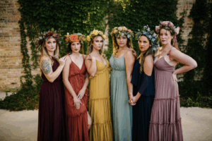 Floral hoops, also referred to as circle bouquets, started as a popular trend with boho weddings. It quickly spread to other styles of weddings since the look is versatile depending on the materials used. Circle bouquets are typically made of a lightweight gold hoop, adorned with flowers, greenery, ribbons, macrame, or whatever elements match your wedding day style. You can also mix and match by having the bride carry a bouquet, and the maids carry the hoops or alternate the maids with bouquets and hoops. These hoops are also great for ceremony backdrops and reception decor. They also provide the perfect opportunity to multi-purpose. Start by taking them down the aisle, then hang them up as a backdrop to your head table or sweetheart table.