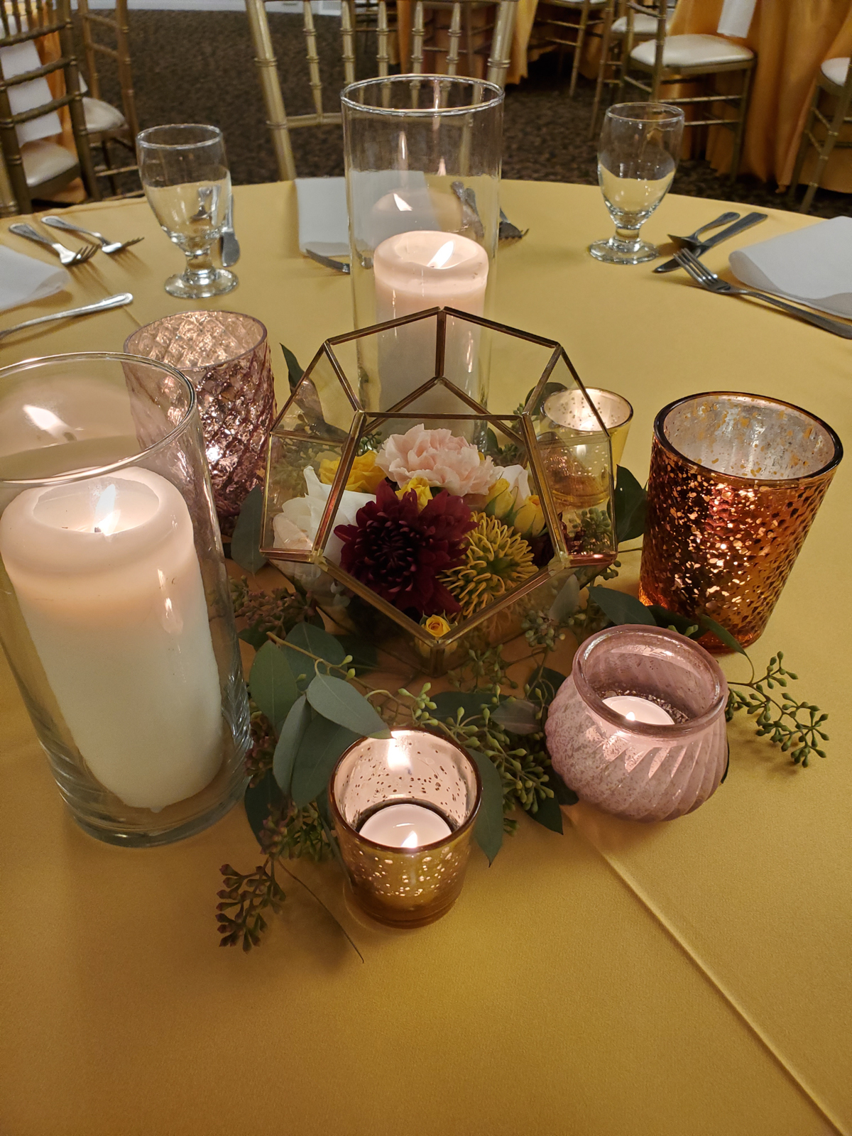 The stunning florals by Simply Glamorous Designs at Oregon Floral were an eye-catching centerpiece for our table decor.