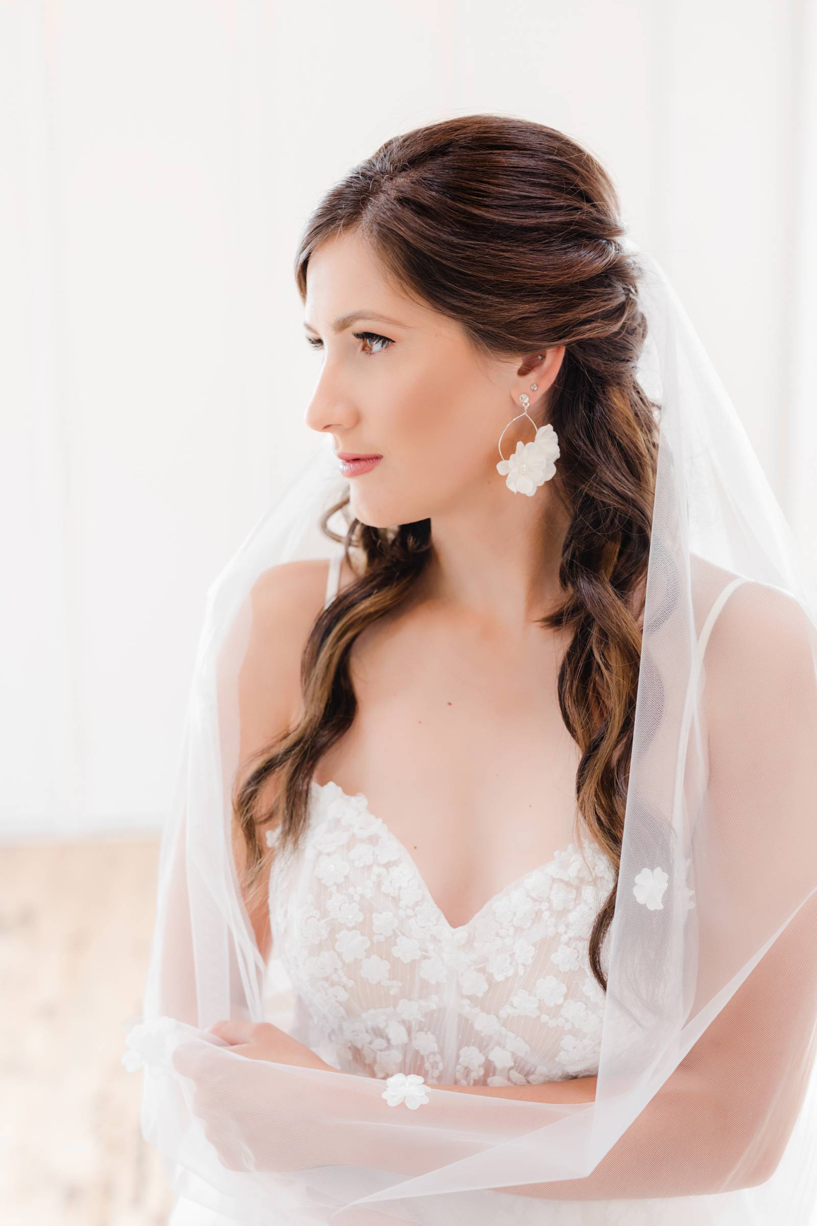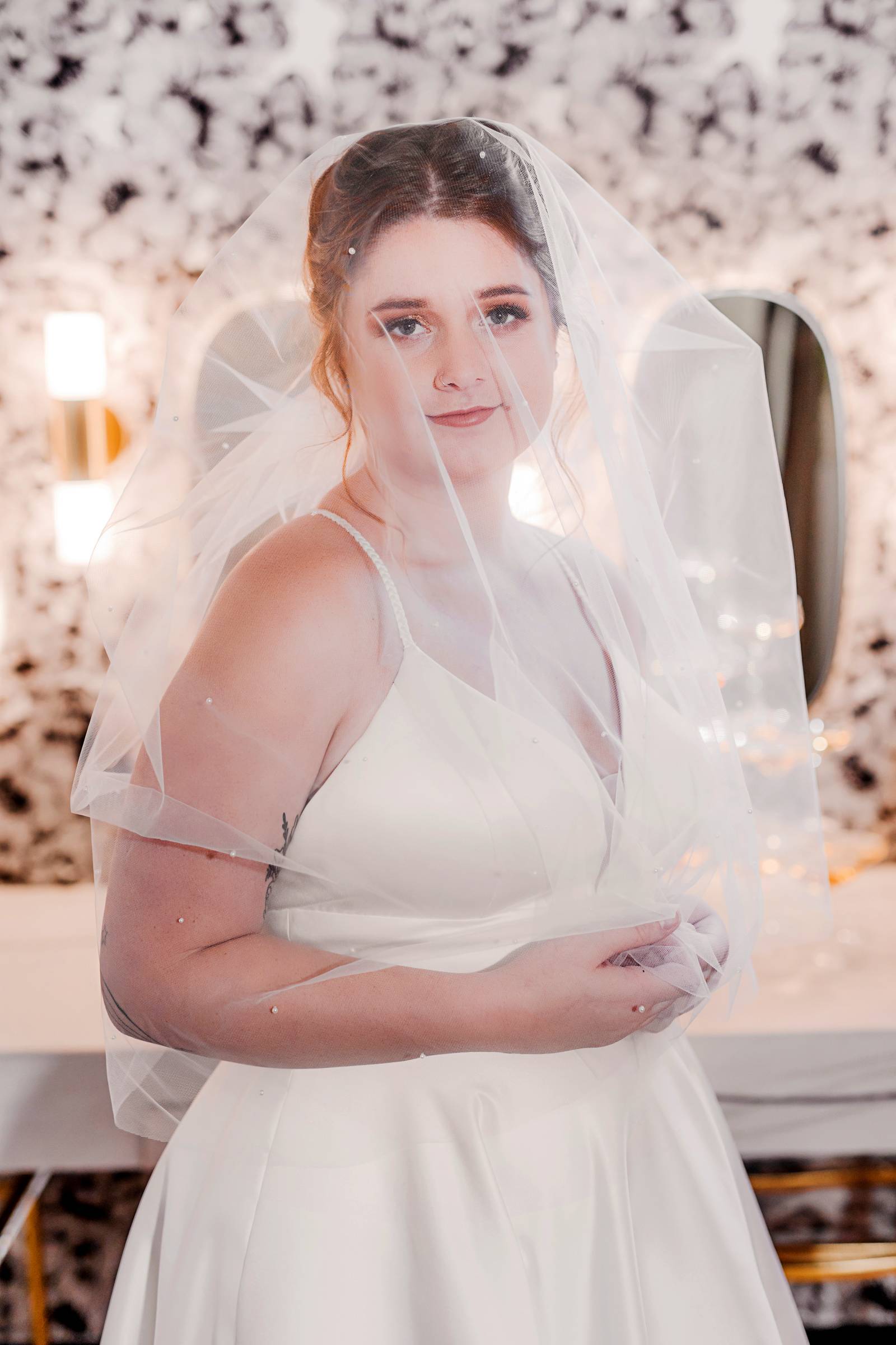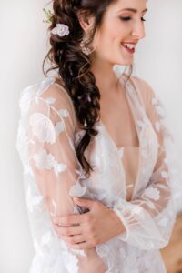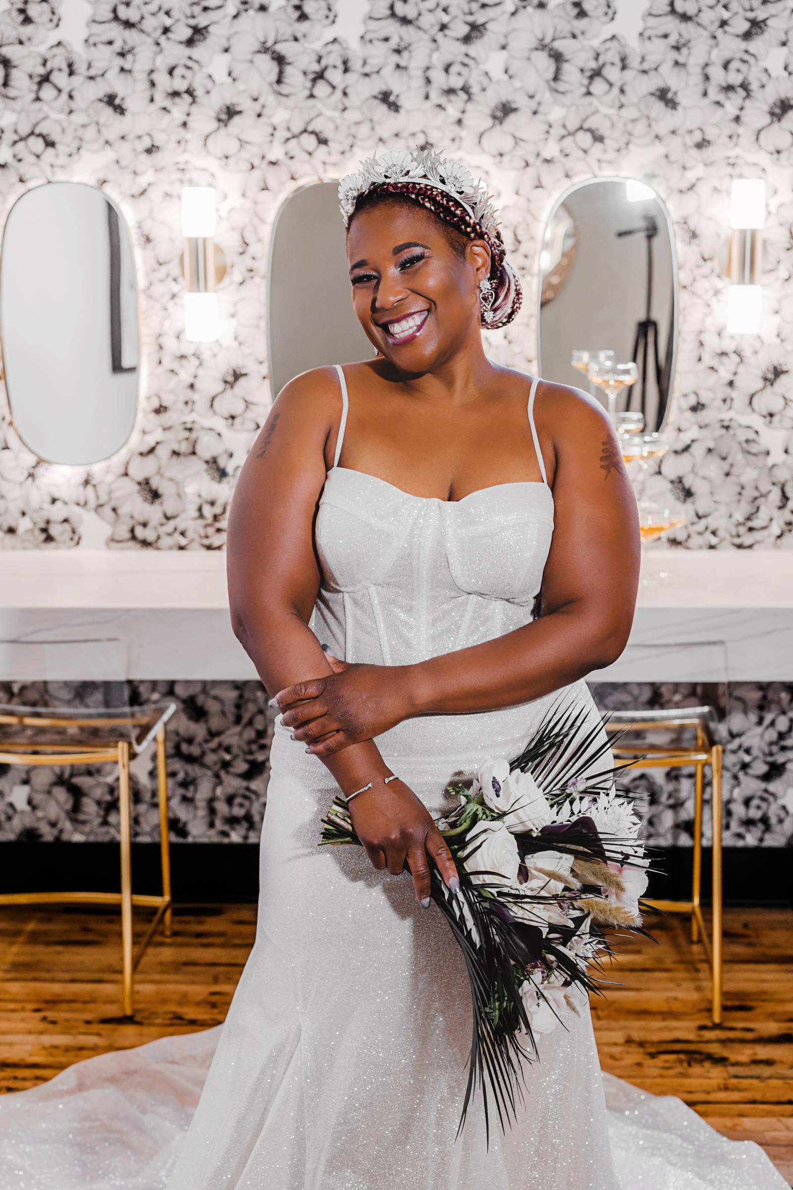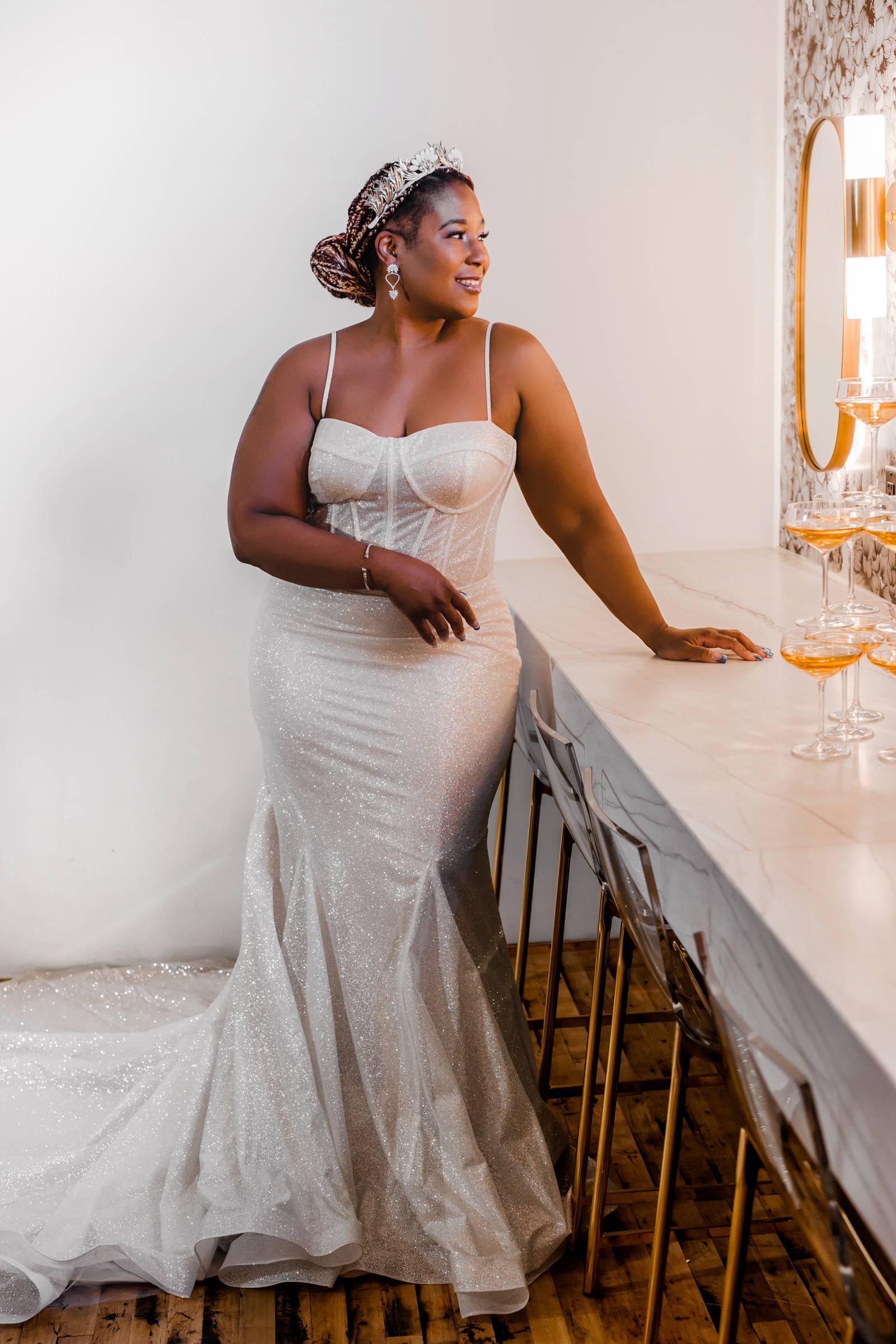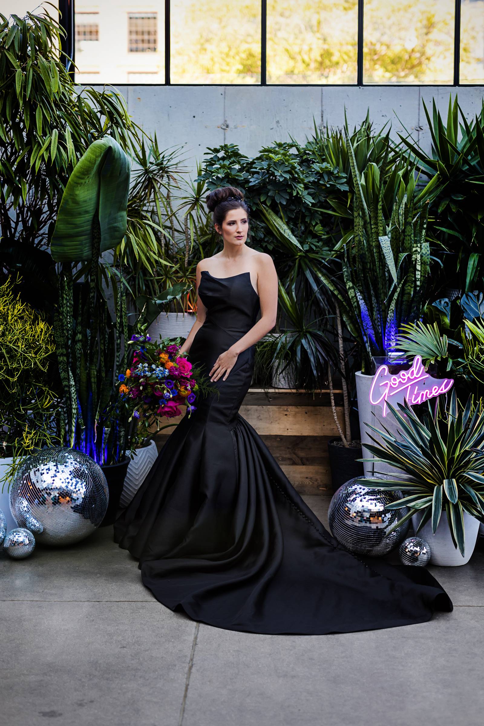 Say hello to modern glam – this sexy style can incorporate so many current trends in bridal fashion, like swiss dot and pearl veils, sophisticated jumpsuits or separates, short and sassy reception dresses, gloves, bows, and bold, glitzy headpieces. This look brings all the ultimate editorial vibes!