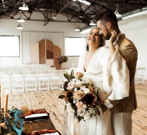 Is there anything sweeter than a warm golden summer sunset? We're loving every detail dripping in sunshine throughout this '70s-inspired modern boho styled shoot at The Tinsmith in downtown Madison! Bell sleeves, bolo ties, contemporary arches, lush blooms, moody vintage details, and the perfect retro photo booth to top of the chic wedding celebration – see it all below!