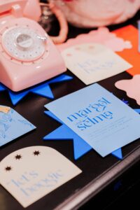 Fest Paper and Design craftily designed their innovative stationery and signage pieces to complement even more fun and funky elements from Velvet Rentals’ chair, ultimately executing a visually impactful celebration from start to finish.