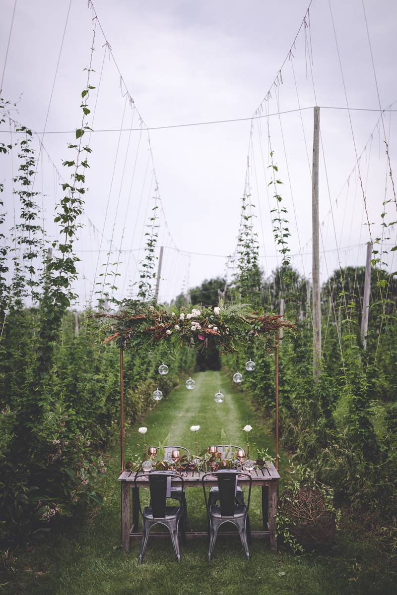 See more HERE from this outdoor copper infused wedding scape in a hops garden at the Oaks Golf Course featured in our 2018 Issue of WP&G.
