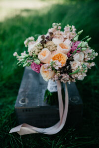 Gorgeous bouquets come in all shapes and sizes, it can be a bit overwhelming knowing what you can get for what price and to have the florals all tie in with your color palette and style of wedding. Which is why we have 5 questions and tips below to ask your Madison wedding florist during the initial consultation. And can we talk about these flowers below from this year’s 2018 gallery shoot featured in Wedding Planner & Guide for a sec? They’re show stoppers. Beautiful bouquets, a ceremony canopy draped in white flowing fabrics, rich burgundies, soft blushes, classic whites, and peaches all complemented by the prettiest greens. See the full floral gallery shoot captured by Abbots Lane Photography right this way.