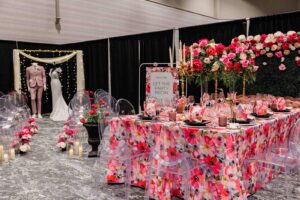 If you’ve ever attended a WedPlan wedding show, you know that inspiration is always in abundance! Earlier this month, we held our annual spring show at the Madison Marriott West, where engaged couples enjoyed connecting with area vendors, tasting delicious bites, and browsing stunning wedding ideas and trends. Throughout the event, curated wedding scape designs were created by talented groups of local wedding professionals bringing all the “spring-spiration” for ceremony and reception looks, dessert displays, fashion, floral installations, stationery, and more for those planning their wedding or other wedding festivities like a bridal shower. Dive into all the gorgeous details below!