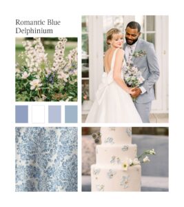 For those who want to bring romance and delicate elegance to their day, a palette of soft blue hues may be just the fit! Click here to see even more wedding inspo using this dreamy array of blue tones.
