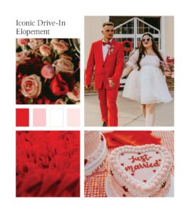 Bold and retro-obsessed couples may just love this kitschy palette of bright reds and playful pinks perfect for a statement-making celebration. Click here for more inspo embracing this sassy style.
