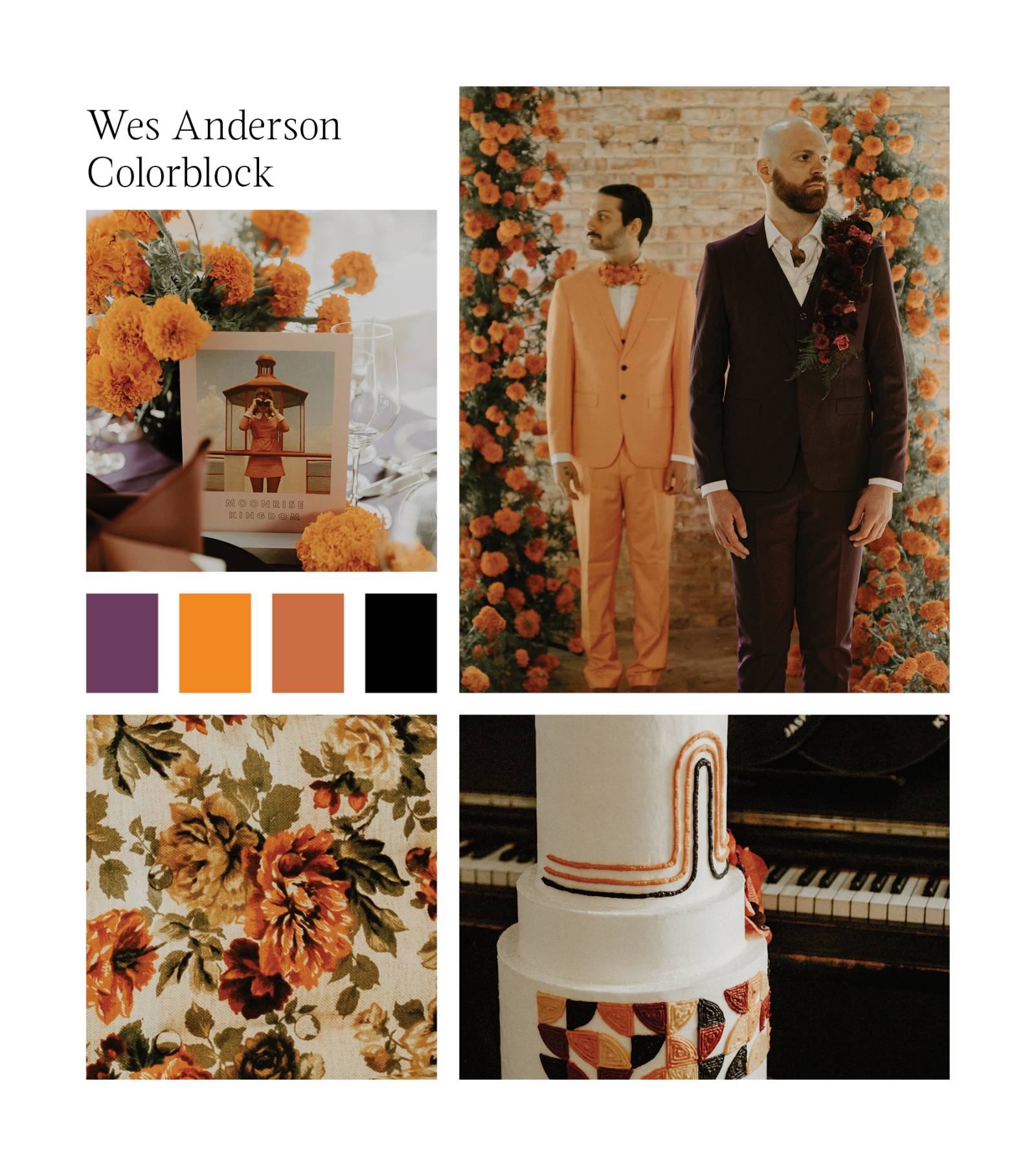 fun-loving couples ready for a colorful celebration and a dang good time? This unique palette of vibrant oranges and purples is perfect for bold colorblocking details and a ’70s-inspired style that will surely be remembered by guests forever! Click here for even more marigold-filled inspiration.