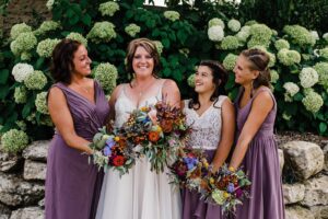 WHAT WAS YOUR WEDDING COLOR PALETTE? Multi-colored with an emphasis on plum and melon.