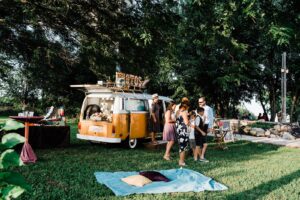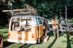 Today we’re transferring you back in time to an era of music and hippies in this Woodstock inspired wedding affair designed by Korrine with Madison event rentals, Event Essentials. With eclectic lounge areas, a vintage 1977 Volkswagen Bus turned photo booth, hanging aerial acrobatic artists, guitar guestbook, colorful blooms, various food carts, grill and snack stations including a “Good Ole Wisconsin Supper Club” station, Melanie and JJ’s festive celebration is one you won’t want to miss. Get ready to pin away with these beautiful images from Cassie Lauren Photo & Design to use for your very own wedding inspiration board.