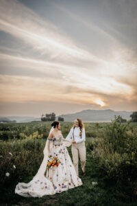 A stunning floral A-line ballgown with detachable balloon sleeves from Vera’s House of Bridals was the star of the show! Non-traditional wedding gowns continue to make their trending bold statements with play on both color and pattern.