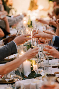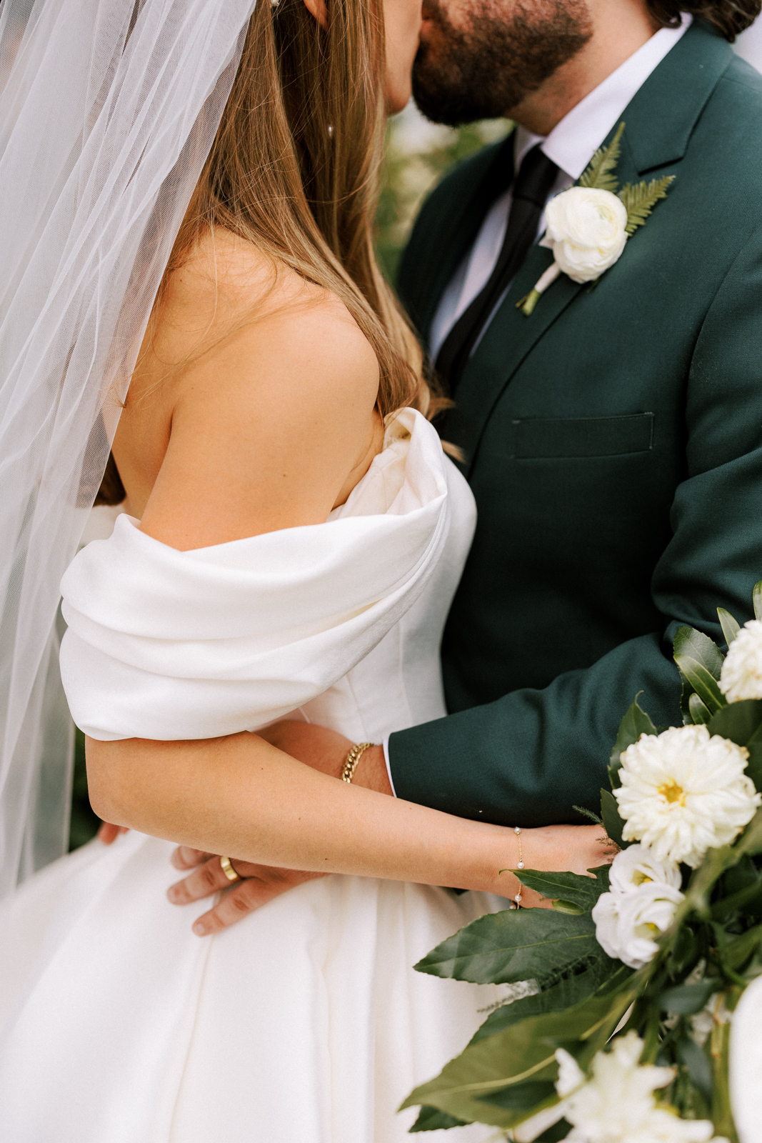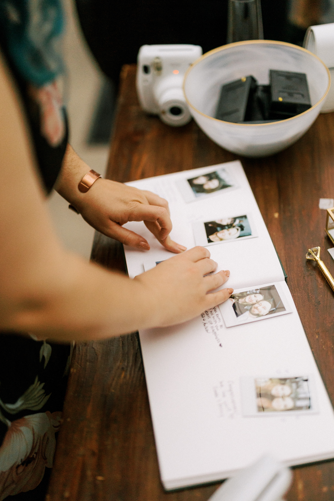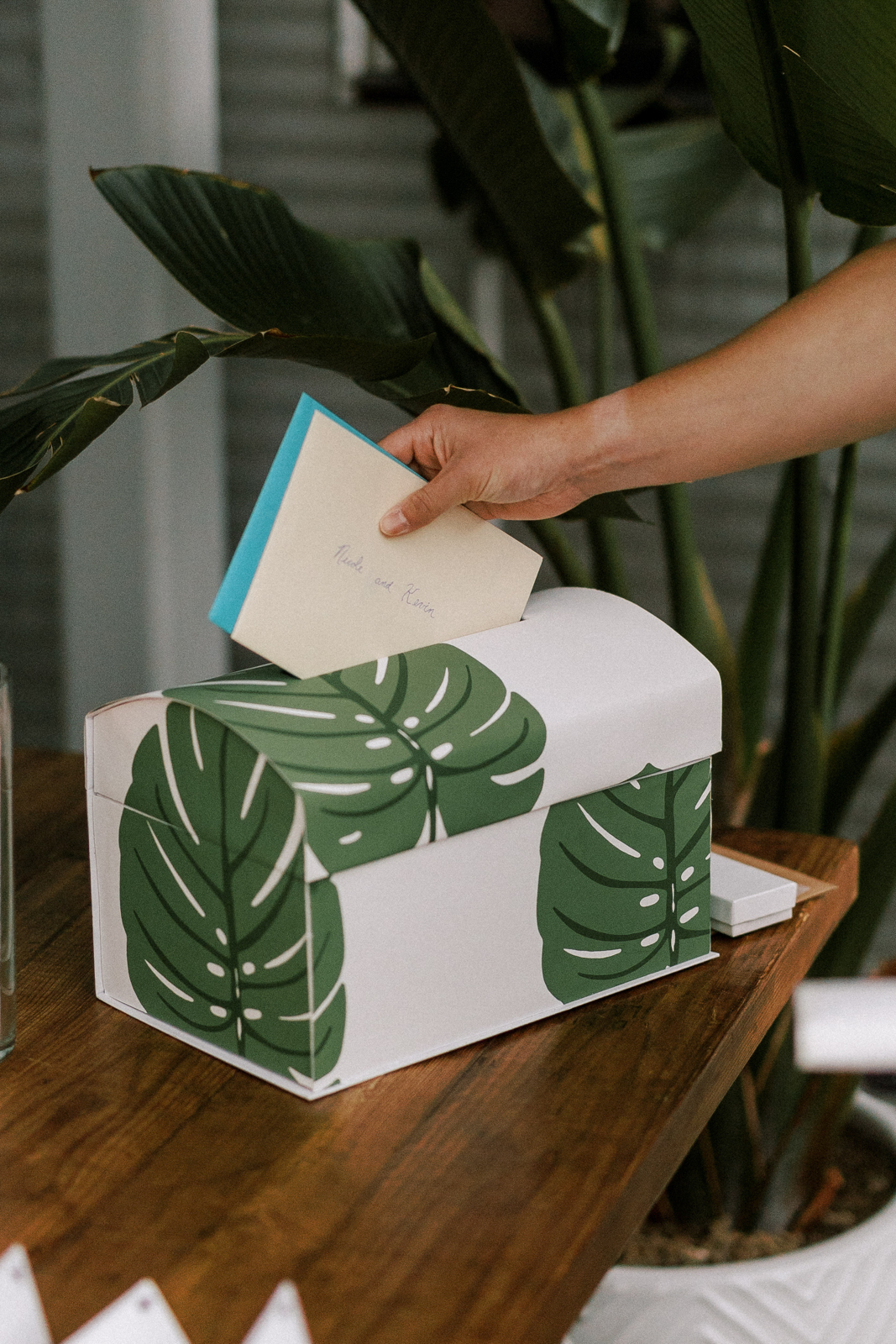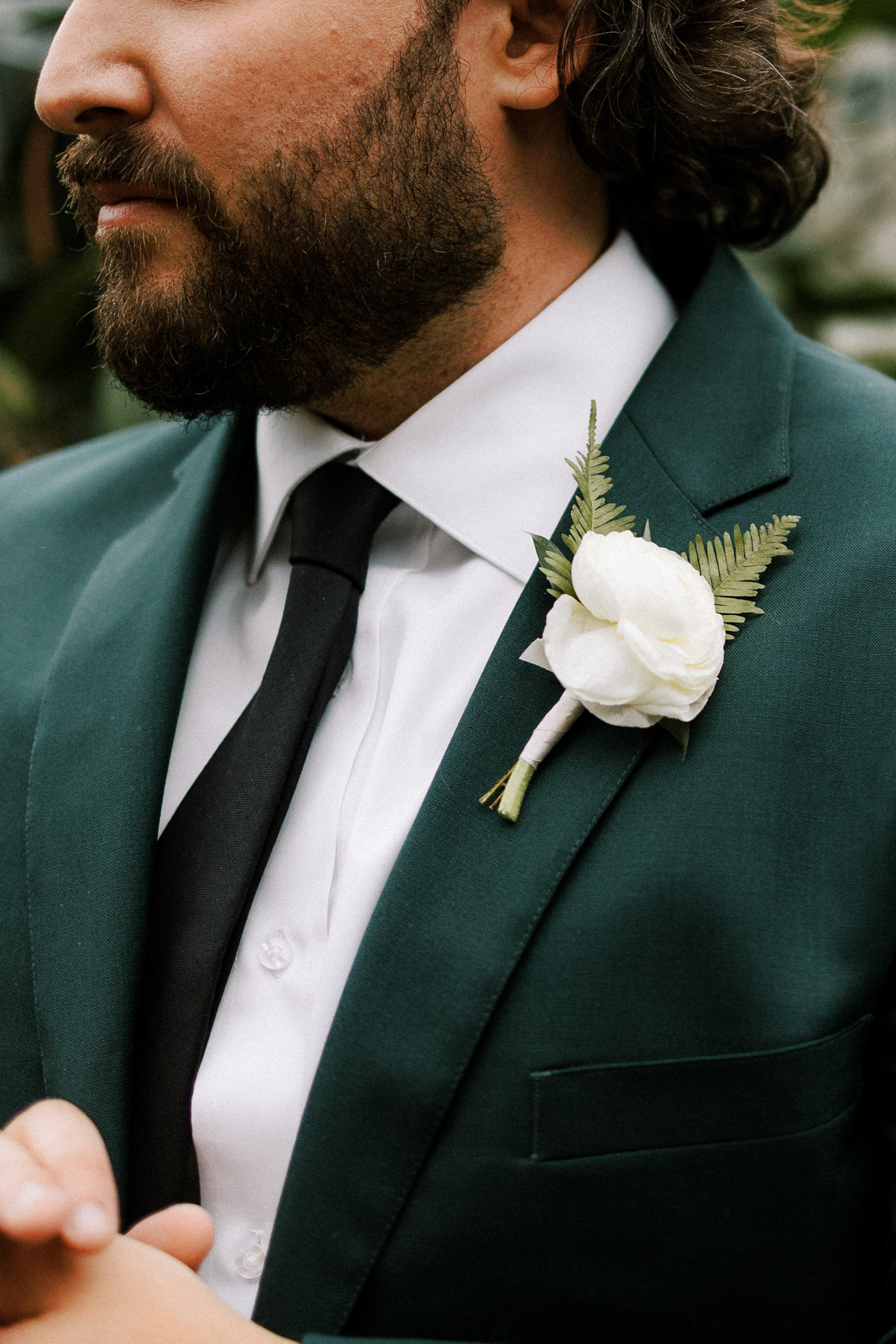 The couple infused their day with many personal touches. Nicole’s family dog, Ellison, joined her while getting ready and even took part in the ceremony. To honor lost loved ones, Nicole incorporated jewelry from her two grandmothers into her bridal look and reserved a seat for her late father during the ceremony. A beautiful, custom-rendered photo was also showcased of him walking her down the aisle. From the stunning statement palms to these deeply sentimental details, we can't wait for you to dive into Kevin and Nicole’s special celebration below!
