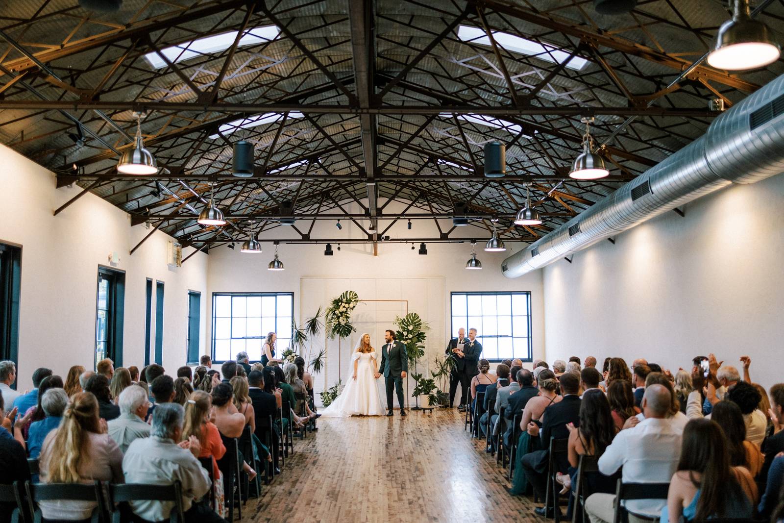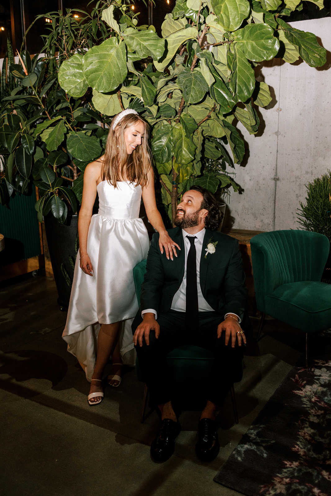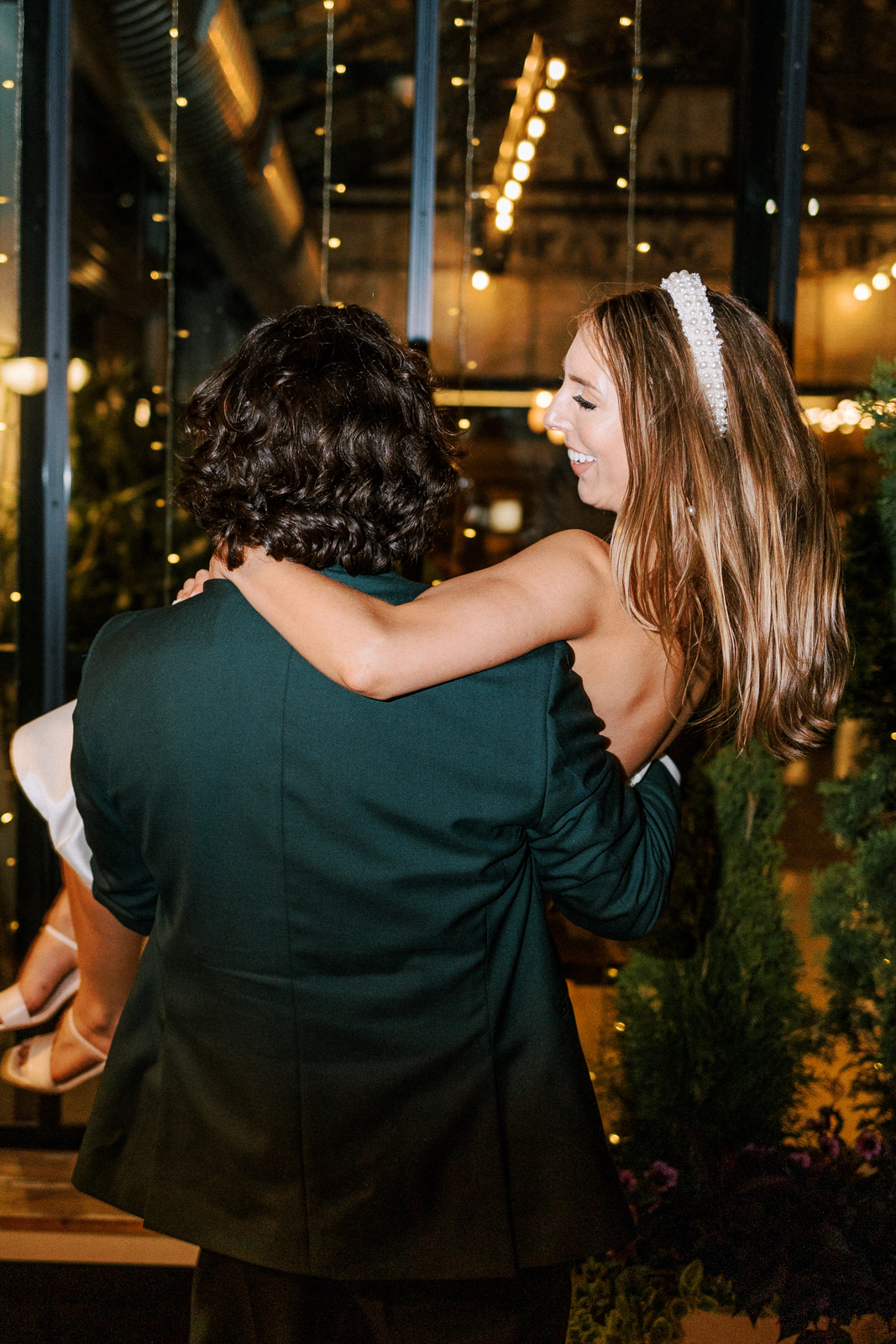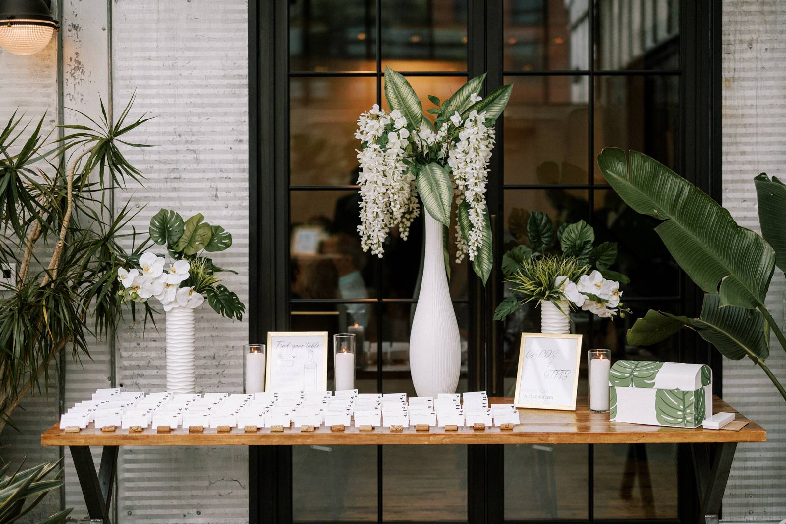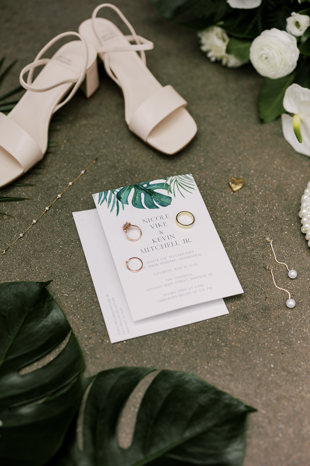 For their wedding, Nicole and Kevin couldn't imagine a more perfect venue than The Tinsmith. Located in the heart of downtown Madison, this urban greenhouse-inspired space allowed them to bring their tropical wedding vision to life, while maintaining a clean and modern aesthetic in the city they love so much. And what’s a party without great food? Blue Plate Catering elevated cocktail hour with delectable hors d’oeuvres and served a delicious dinner featuring braised short rib, chicken saltimbocca, and miso-glazed tofu, ensuring no guest was left unsatisfied.