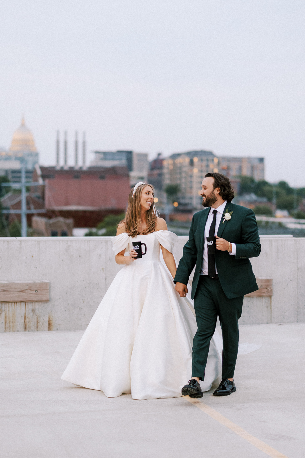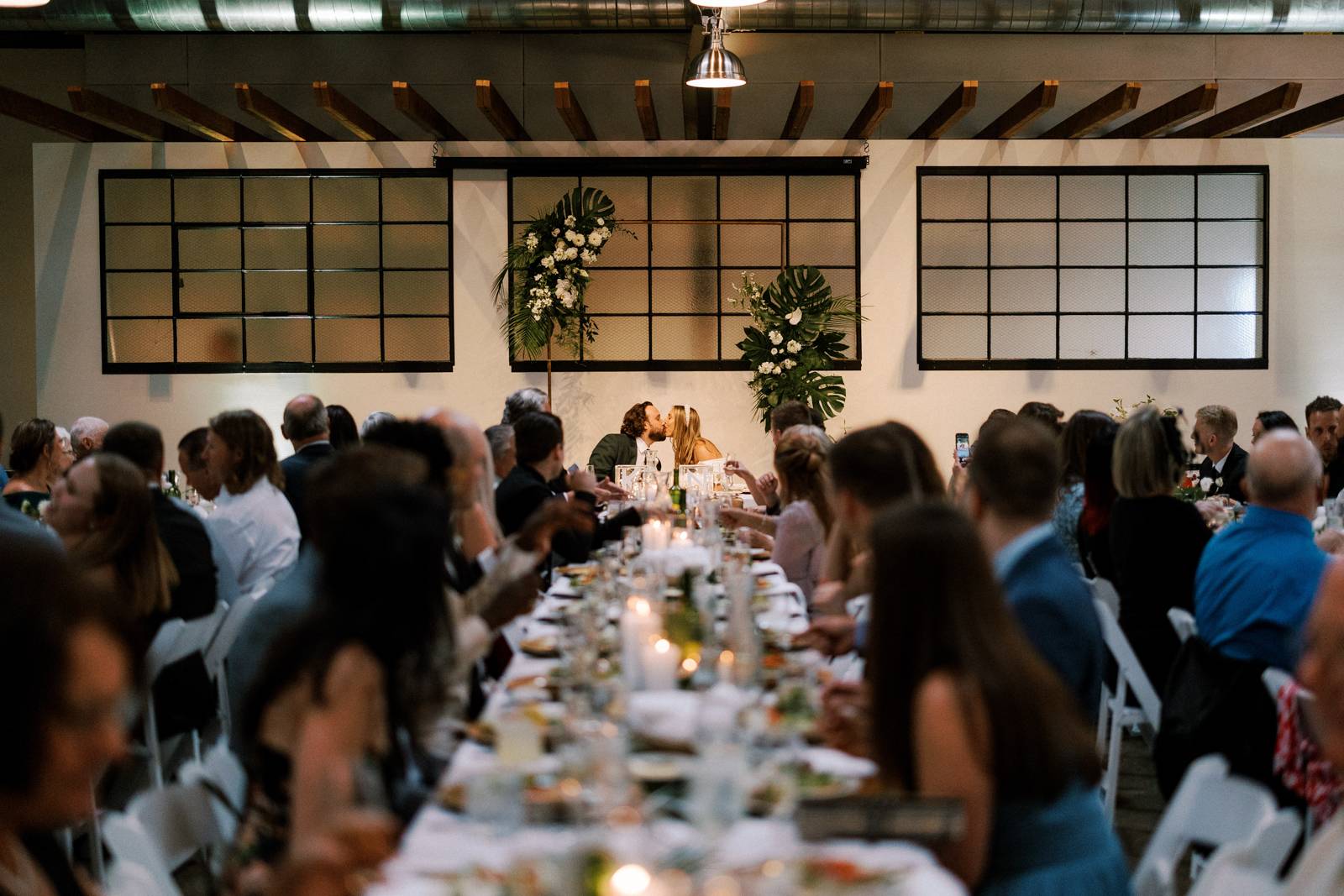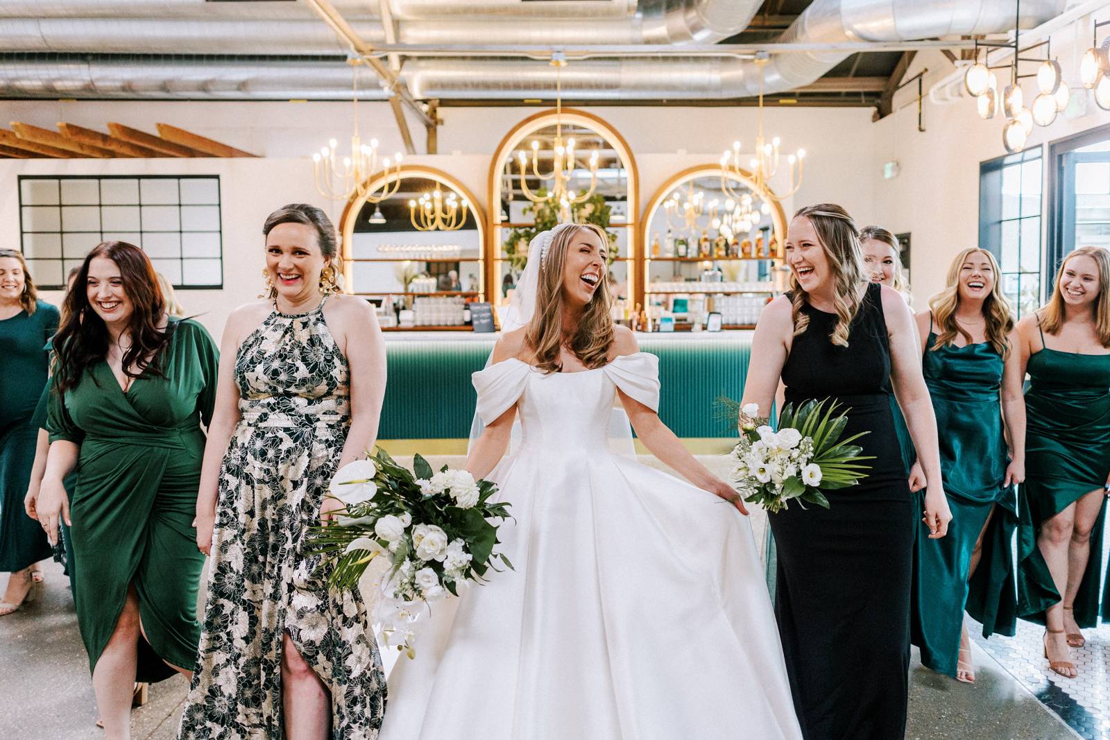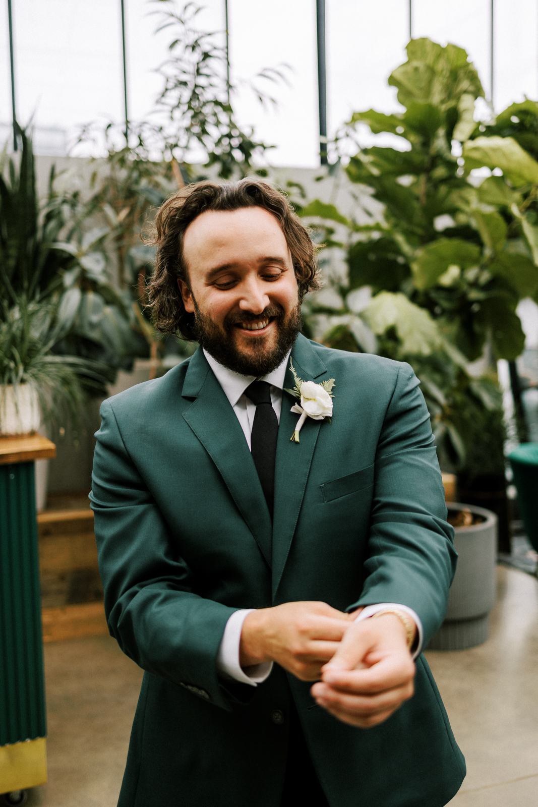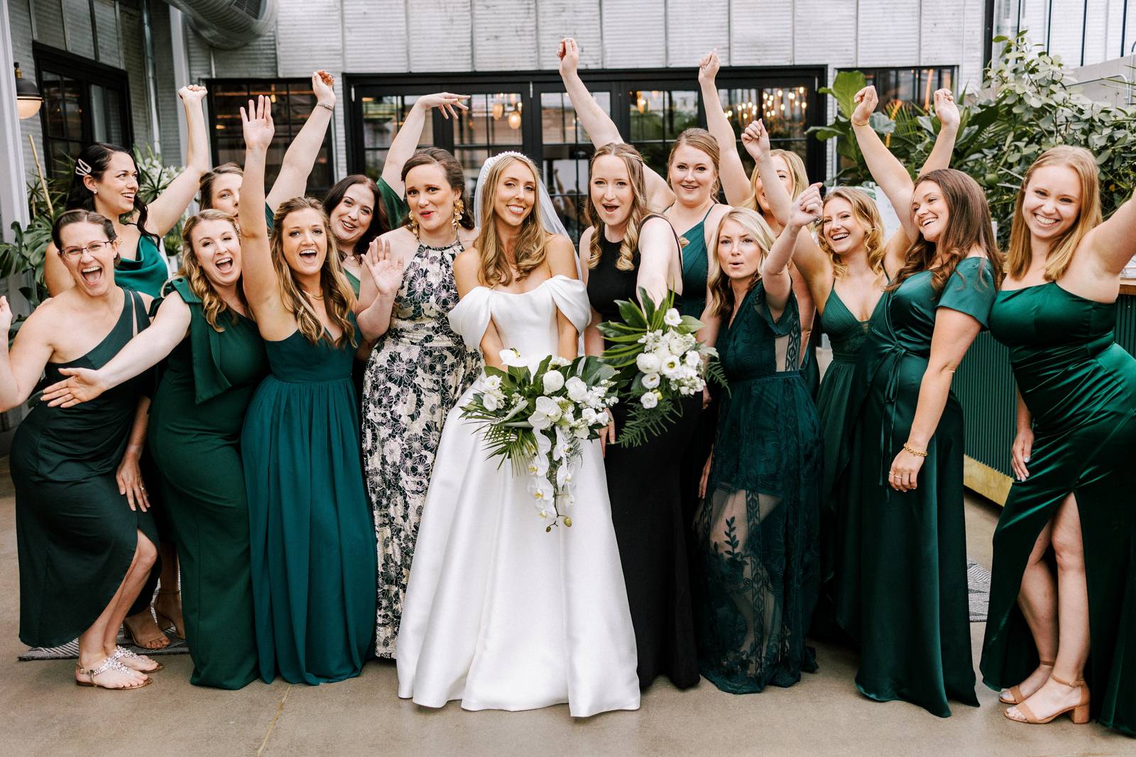 For their wedding, Nicole and Kevin couldn't imagine a more perfect venue than The Tinsmith. Located in the heart of downtown Madison, this urban greenhouse-inspired space allowed them to bring their tropical wedding vision to life, while maintaining a clean and modern aesthetic in the city they love so much. And what’s a party without great food? Blue Plate Catering elevated cocktail hour with delectable hors d’oeuvres and served a delicious dinner featuring braised short rib, chicken saltimbocca, and miso-glazed tofu, ensuring no guest was left unsatisfied.