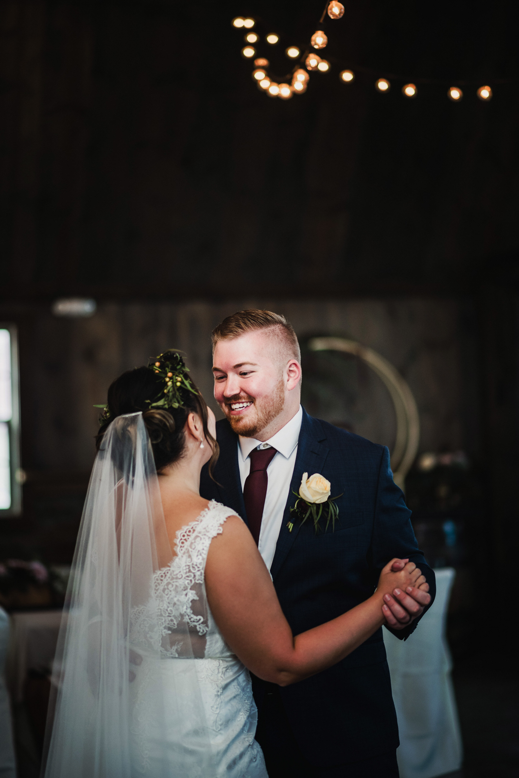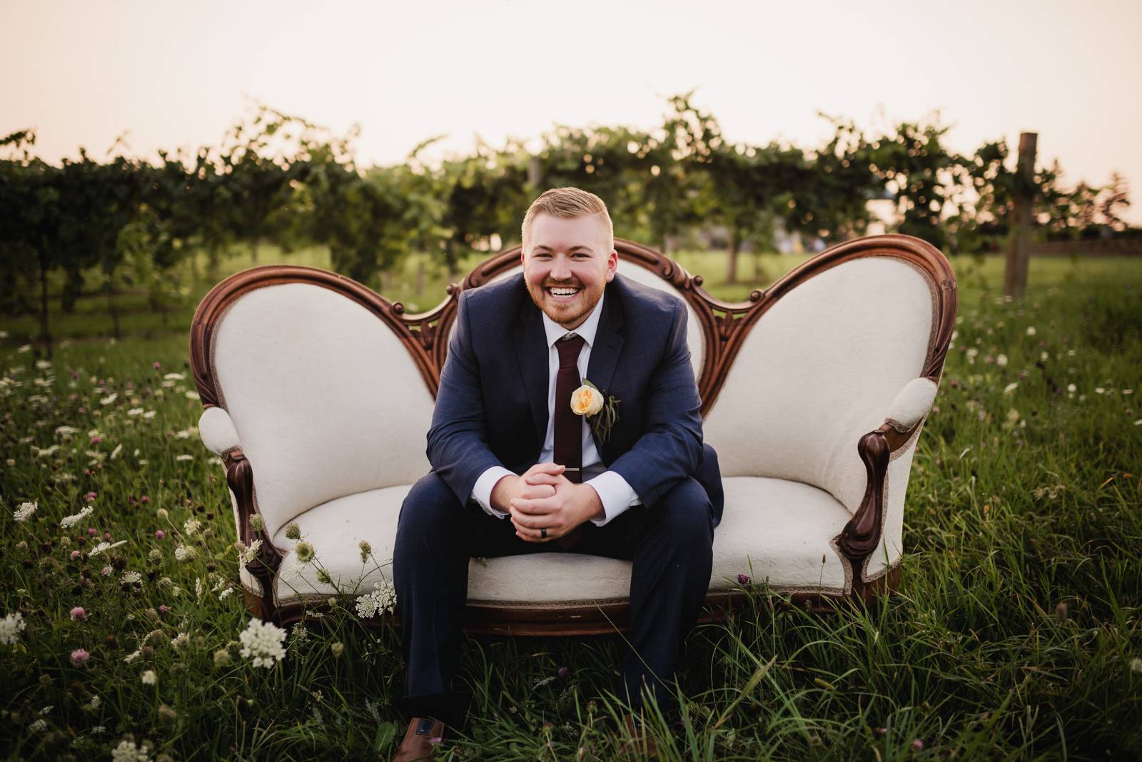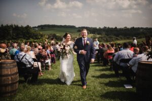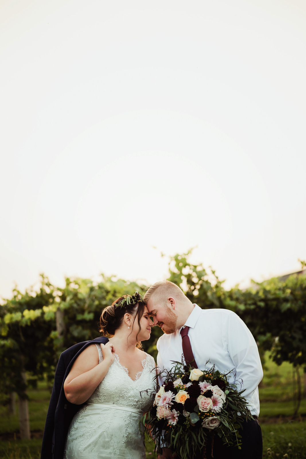 TELL US ABOUT THE FOOD, DESSERT, AND ANY SPECIALTY BEVERAGES ON THE MENU: All the recipes were mine, allowing me to illustrate my culinary arts degree and because I am very passionate about food. They were all very personal to me and some of our family favorites. Our pre-dinner food was bruschetta with parmesan garlic toast, spinach dip, and an assortment of Italian meats and cheeses to go with the wine theme. The main meal was baseball-themed because my husband is a huge sports fanatic. My uncle made smoked brisket and pulled pork, and our caterer grilled mini hot dogs served on mini hot dog buns. We also had pretzel bites with beer cheese dip, broccoli salad, and loaded baked potato salad. For dessert, we had multiple desserts bars including, lemon squares, strawberry crumble, and turtle bars. Our wedding cake was maple with a cream cheese frosting. We served the wine from the vineyard and had an open bar of mixed drinks. And of course, since the wedding was in Wisconsin, my uncle made some homemade peach pie liquor that we all got to enjoy.