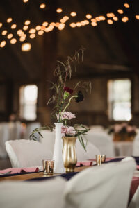 WHAT WAS YOUR WEDDING COLOR PALETTE? Burgundy, dusty rose, gold, and navy blue with pops of yellow from crème de la crème roses.