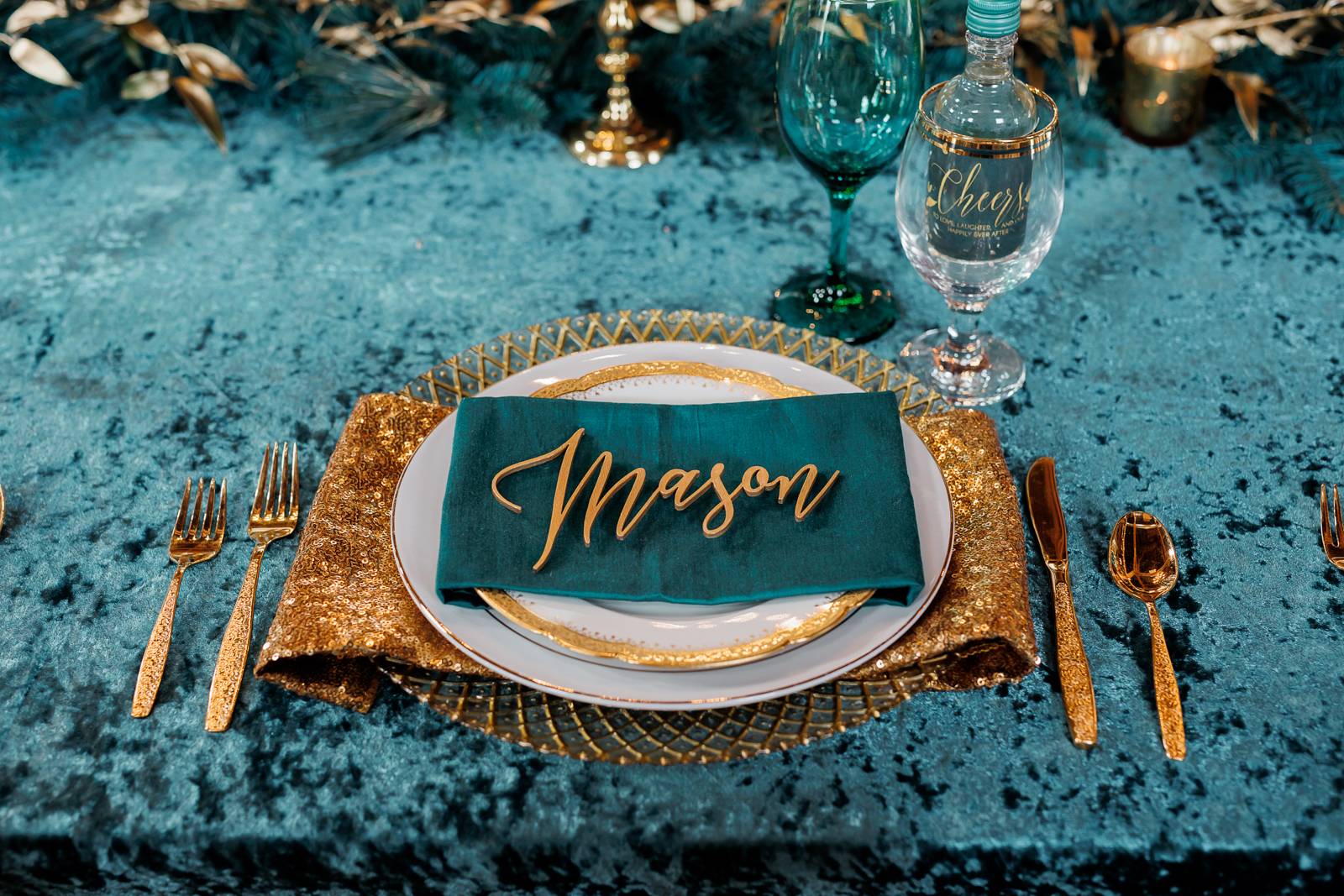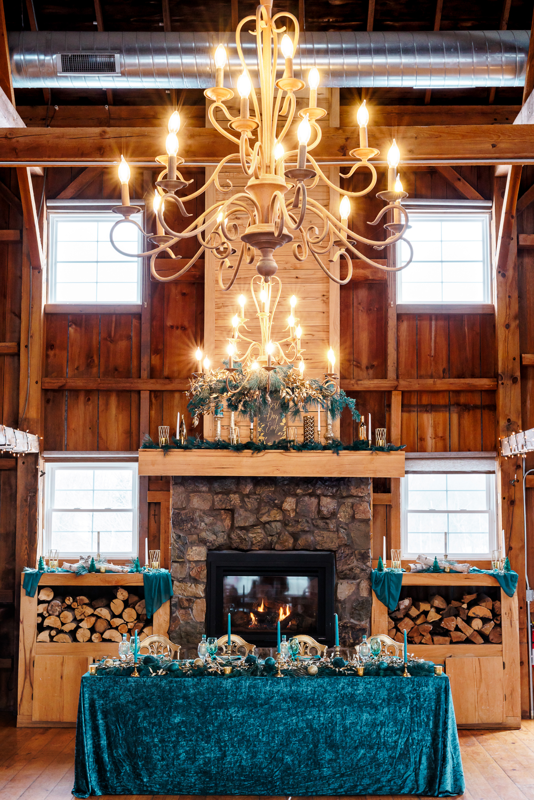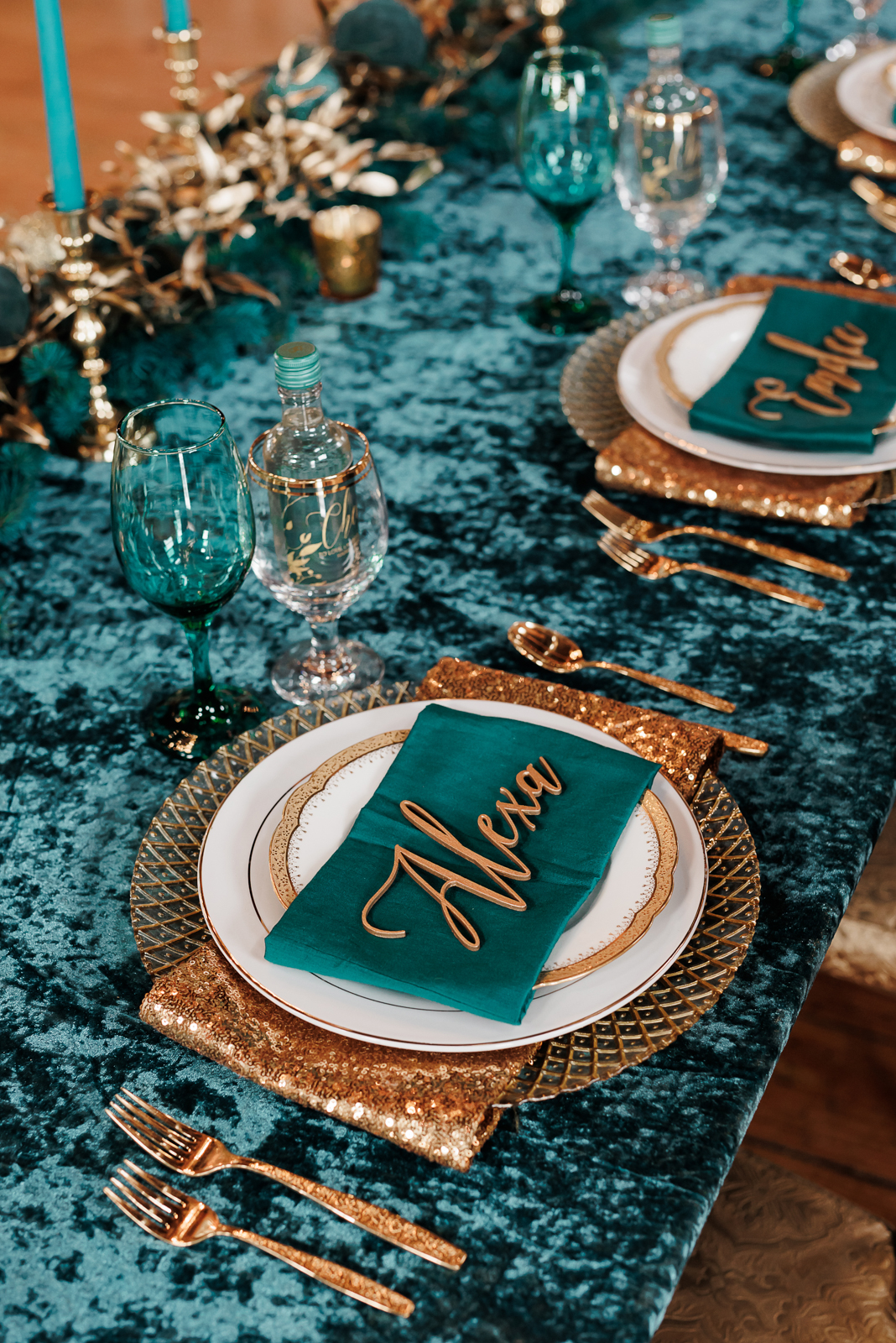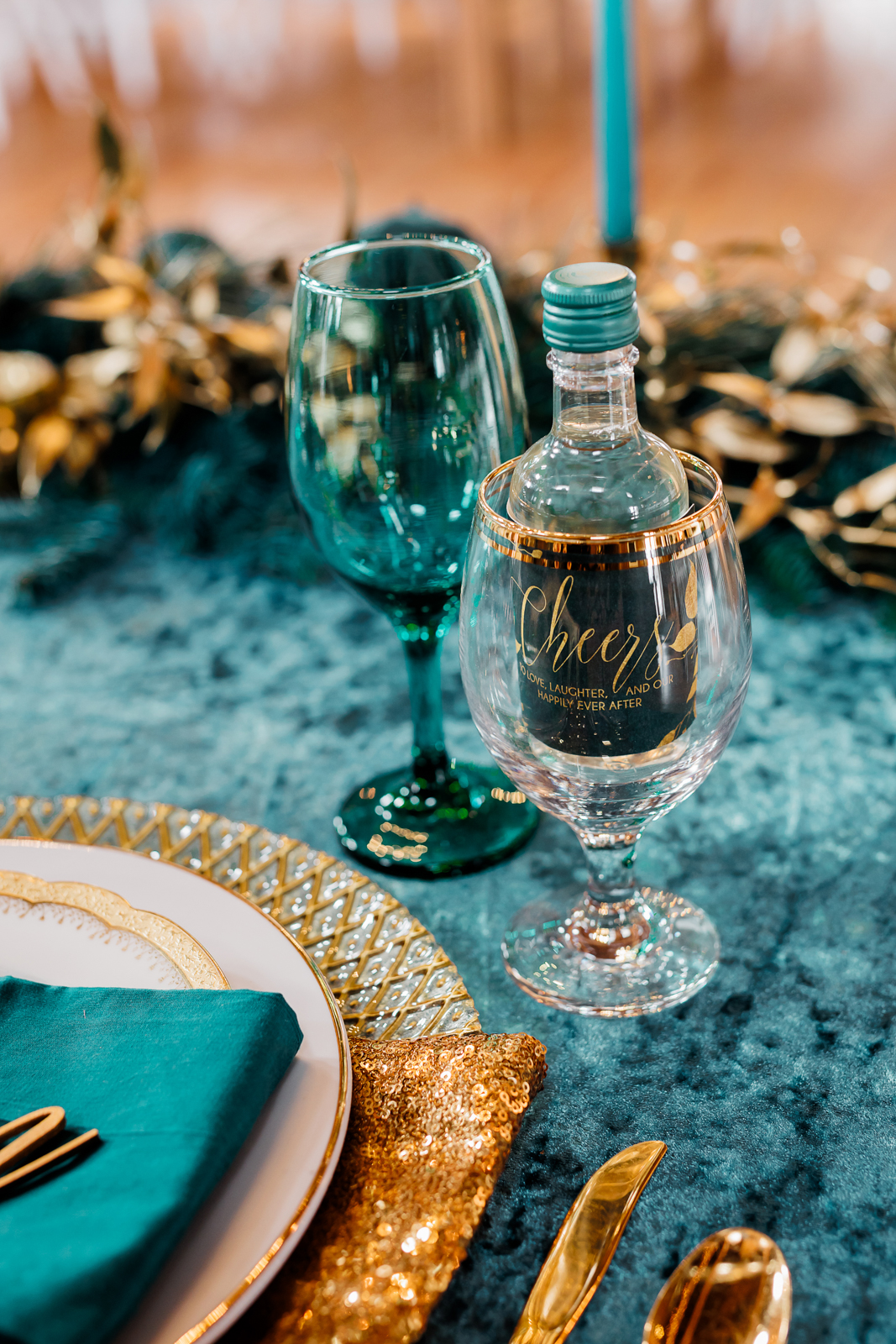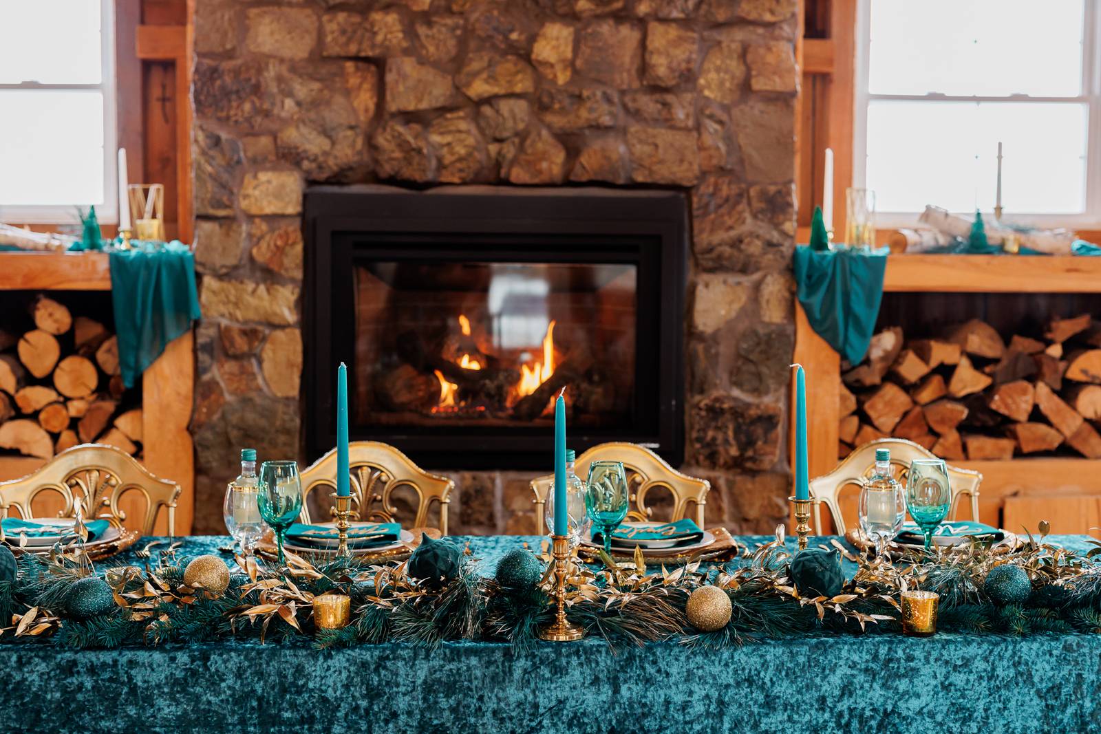 A GLITZY TEAL + GOLD WINTER GLAM WEDDING DESIGN AT HARVEST MOON POND