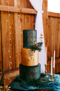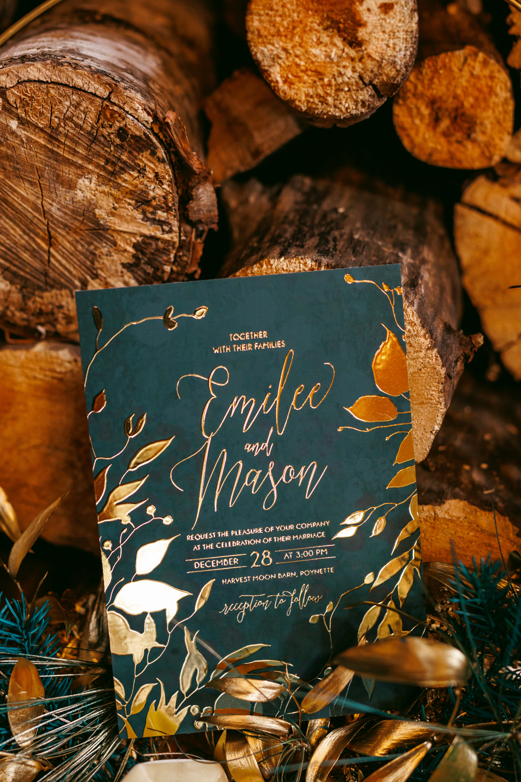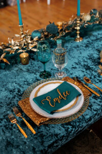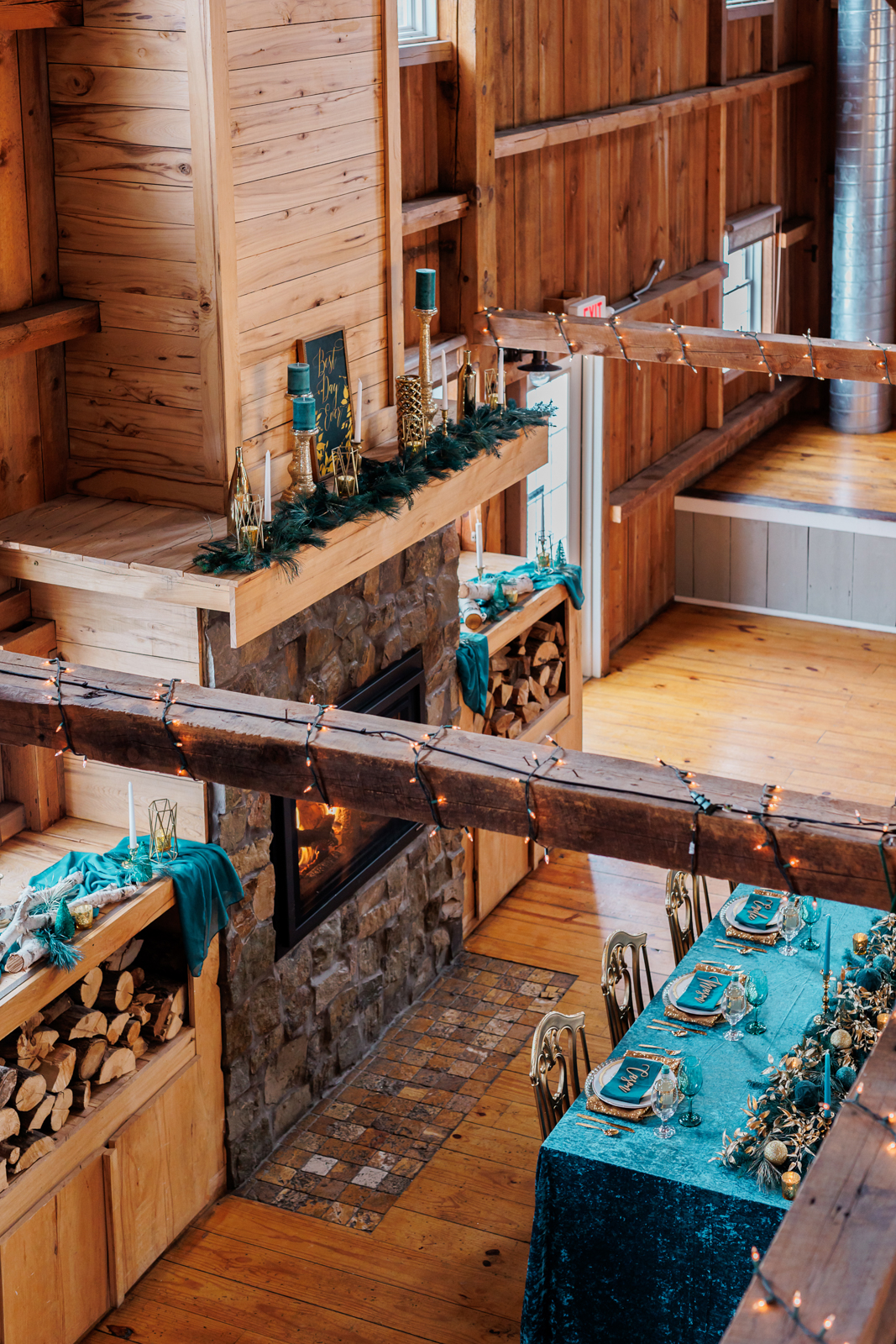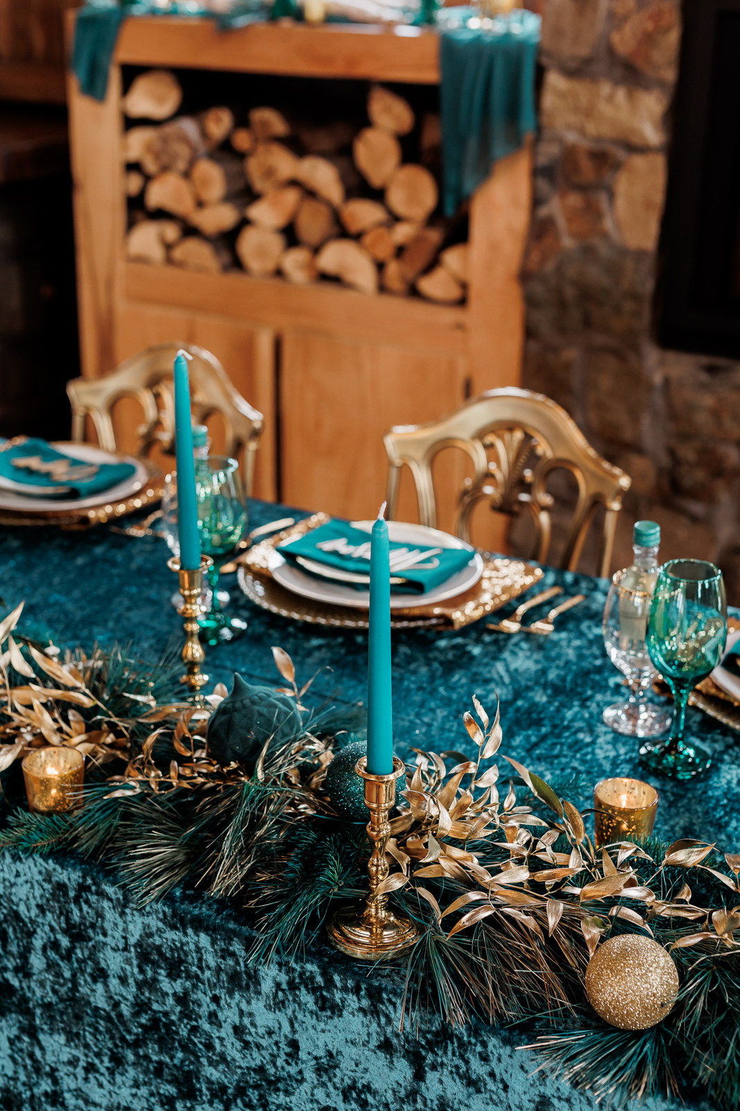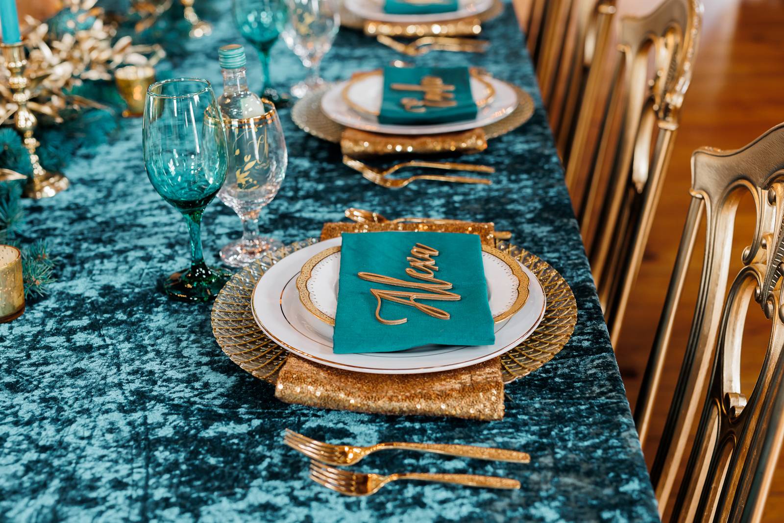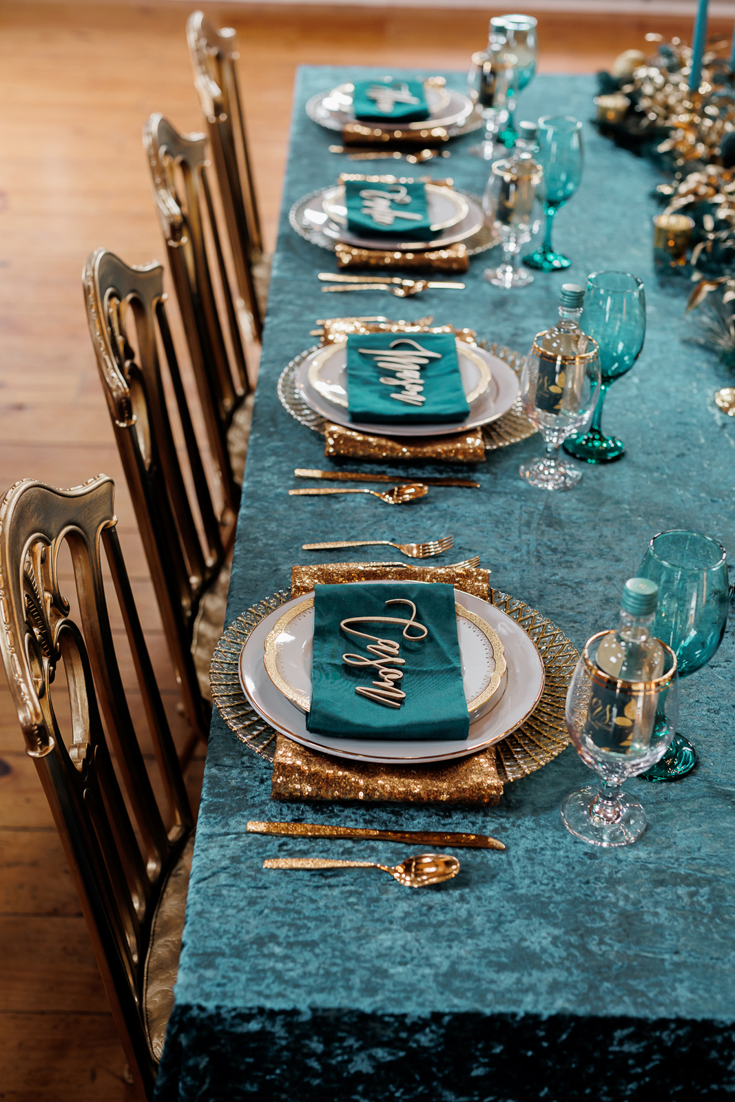 A GLITZY TEAL + GOLD WINTER GLAM WEDDING DESIGN AT HARVEST MOON POND