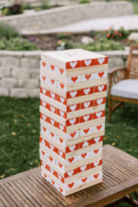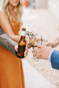 Everything about Michelle and Evan’s wedding screamed Michelle and Evan. This fun-loving couple incorporated many intentional and personalized details into their celebration, like custom stir sticks, outdoor games and decor elements created by family, a generations of love board, having their guests write them a letter for the anniversary that corresponded with their table number, late-night pizza, choreographed dances, playing the “Thunderstruck” drinking game on the dance floor twice lead by MIdwest Sound DJ Entertainment, and so much more. One crucial detail for Michelle was a bespoke wedding gown and veil from Mara Marie Bridal. Michelle worked closely with the designer all the way in London to craft the dress of her dreams. Michelle’s showstopping veil included lace from her mother’s wedding dress, and their names and wedding date were beautifully hand-embroidered into the design.