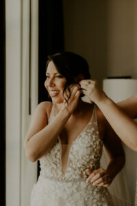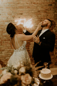 Paige and Mat’s story began 10 years ago back in 2013 after crossing paths at City Bar on State Street in Madison. Their meet-cute went down at the jukebox, where Mat cheekily poked fun at Paige’s Usher obsession while attempting to sneak in one more jam. On their wedding day, the lovely couple decided to share some drinks and nostalgic memories where everything started – at the place they met to commemorate this new chapter of their love story! Captured by Copper Antler Photography, dive into all the creamy-colored and sparkling details below!