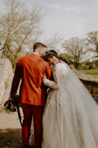 By the time the couple was engaged, Claire had been helping brides find their perfect dress for 10 years and wanted to treat herself with the same love, understanding, and respect that she did with her brides when helping them. To create her vision, Claire decided to design a custom dream dress through her long-time employer Vera’s House of Bridals. Vera’s carries Stephen Yearick gowns which are one of the few designers that will make a gown that is completely customizable to your needs. Claire’s deep knowledge of bridal fashion combined with the impeccable resources from Vera’s House of Bridals is what helped her in her journey to finding her dream gown and looking like an absolute goddess on her wedding day! And her reception outfit? Well, you’ll just have to see the breathtaking dress change for yourself!