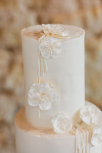 A breathtaking 5-tiered cake by The Baked Lab paid homage to the artistic and organic elements of the wedding design. The monochrome dessert cleverly added shadow and texture using a cascade of artful flowers and thin threads of frosting.