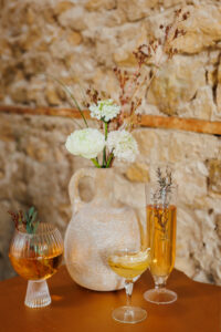 Velvet Rentals brought the neutral and organic wedding design to life with their carefully selected rental items. Their collection included King Louis Chairs, handcrafted bud vases, vintage coupe champagne glasses, a textured wool rug, and more. Windy City Linen supplied a stunning off-white, shimmery gold tablecloth paired with taupe satin napkins to complete the luxurious tablescape.