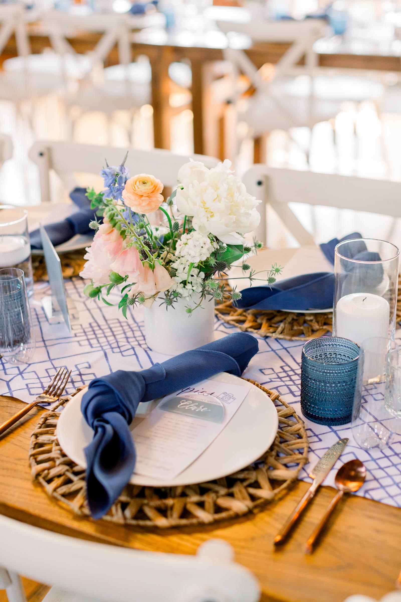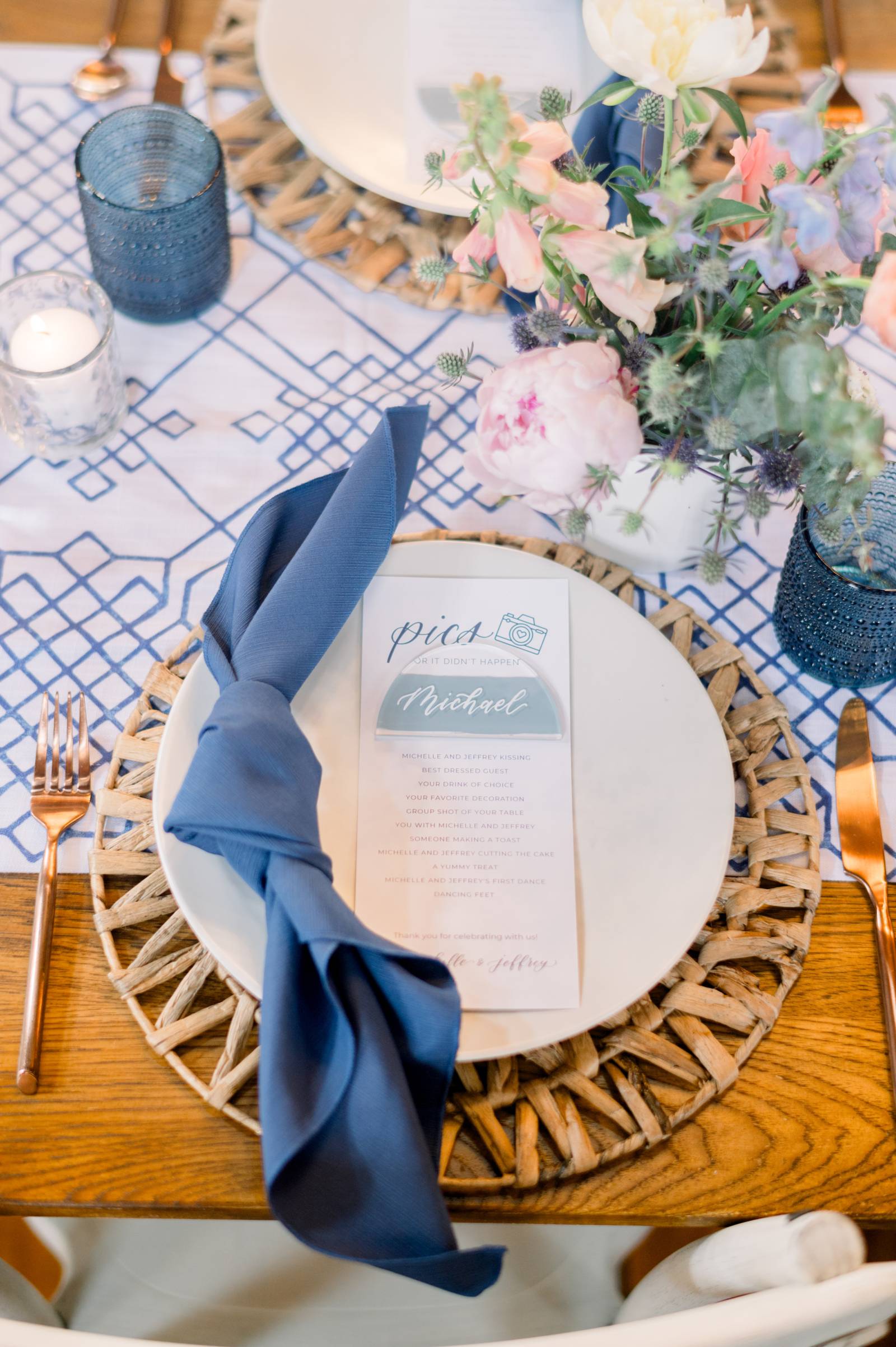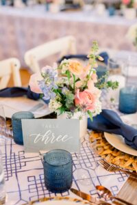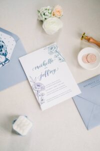 Filled with color and playful details, these two planned a lively blue-hued party that truly celebrated them and made for an incredible guest experience for their loved ones! Personalization was key for Michelle and Jeffrey’s wedding day. Some of the intentional aspects they included: