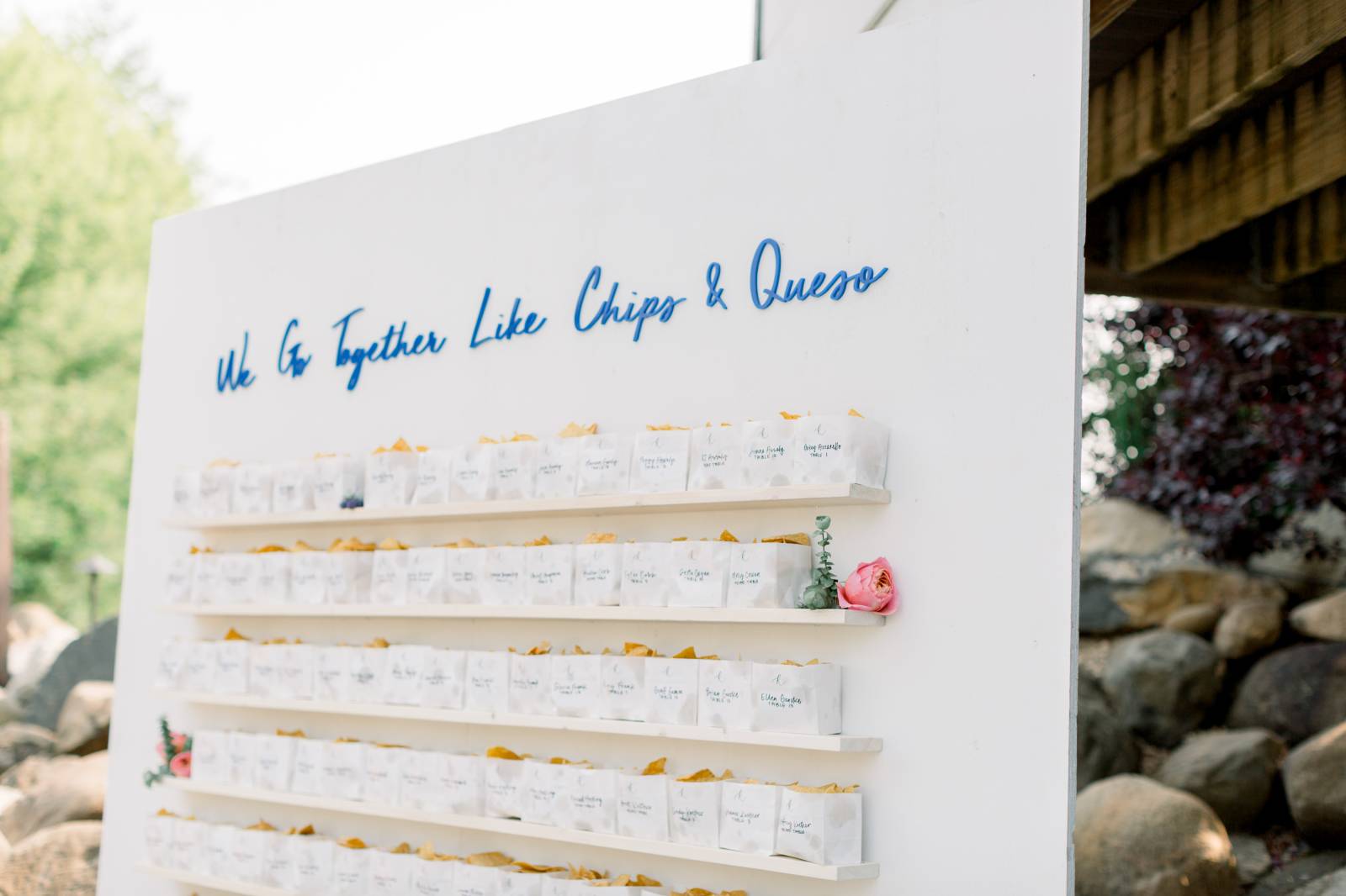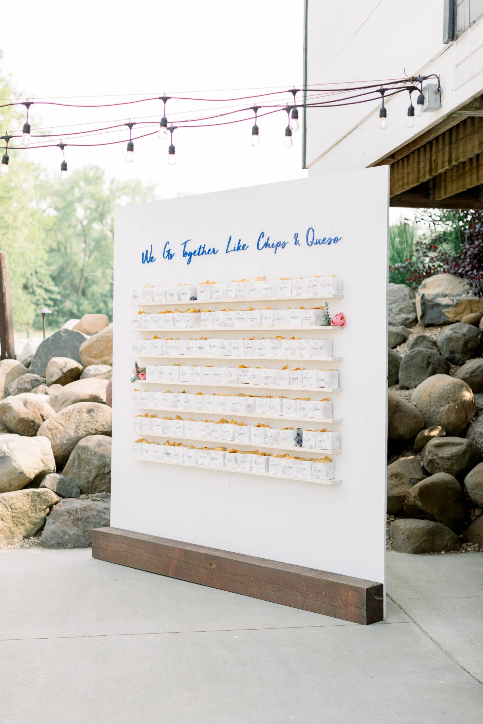 - A chips & queso seating chart wall in honor of Michelle’s favorite food