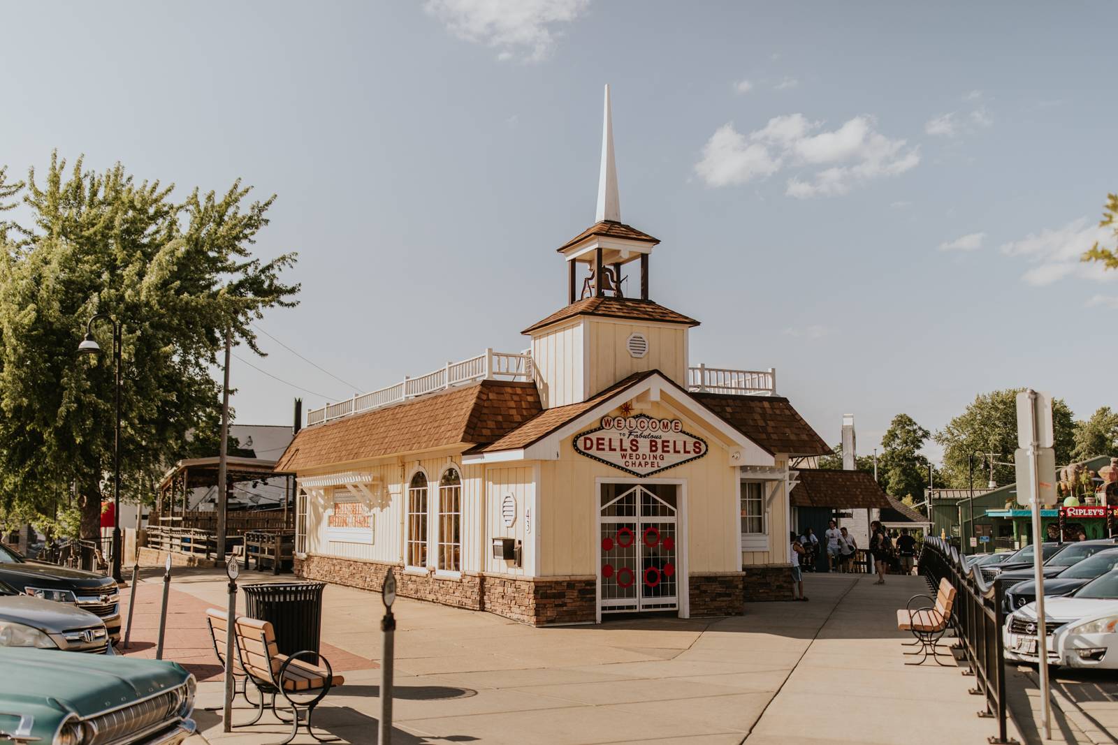 Bringing a carefree Vegas-style wedding experience to the Midwest since 2004, the Dells Bells Wedding Chapel was the ideal location for a retro-meets-modern elopement! An onsite officiant made tying the knot simple and easy, and their prime downtown Wisconsin Dells’ location provided a fun and lighthearted atmosphere to celebrate. After saying, “I do,” pull up a seat at any one or more of the local scene’s friendly locations!