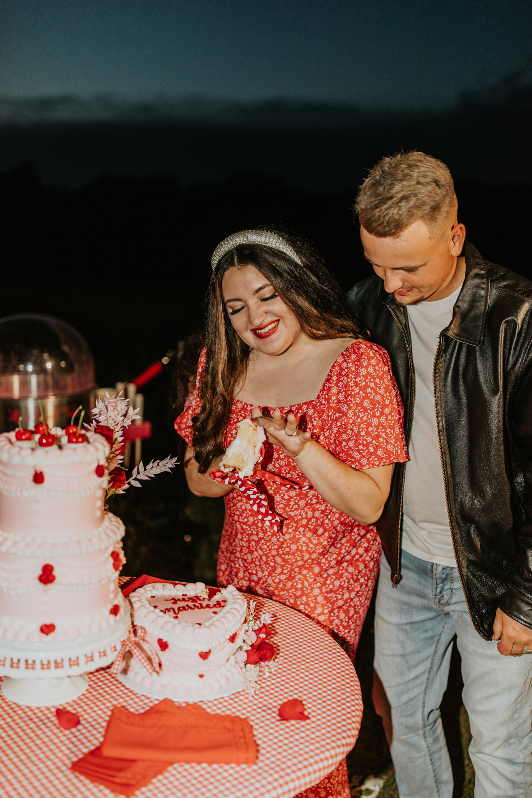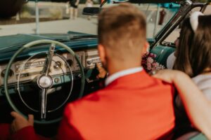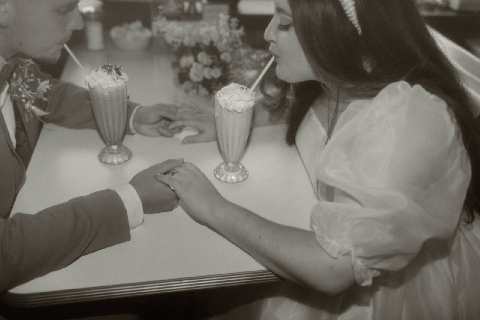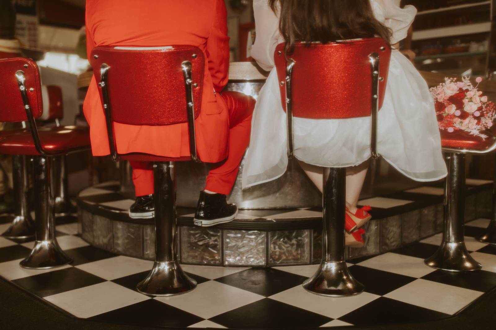 Every ’50s-inspired elopement needs an afterparty! Melody Rose Designs provided the inspiration for the floral and rental decor, transforming this wedding reception into a captivating retro drive-in movie scene. With creative floral arrangements and an abundance of carefully curated rental items, this celebration was a cinematic experience filled with vintage allure and romance.
