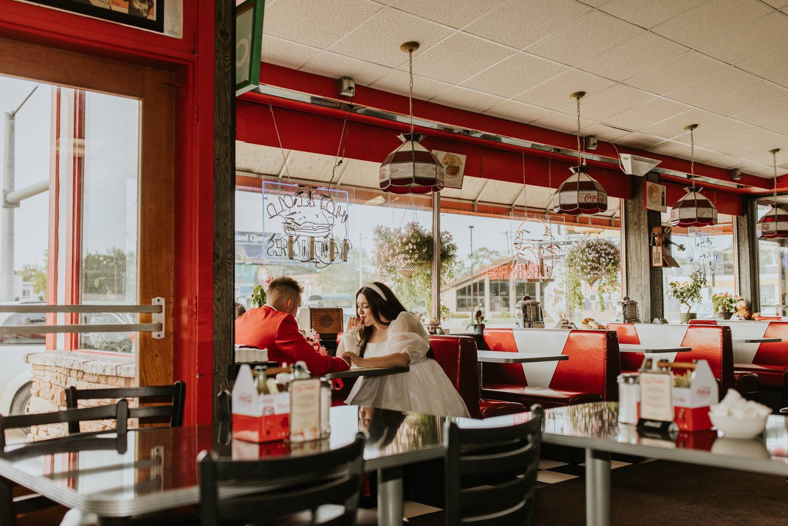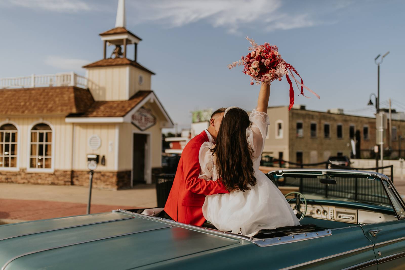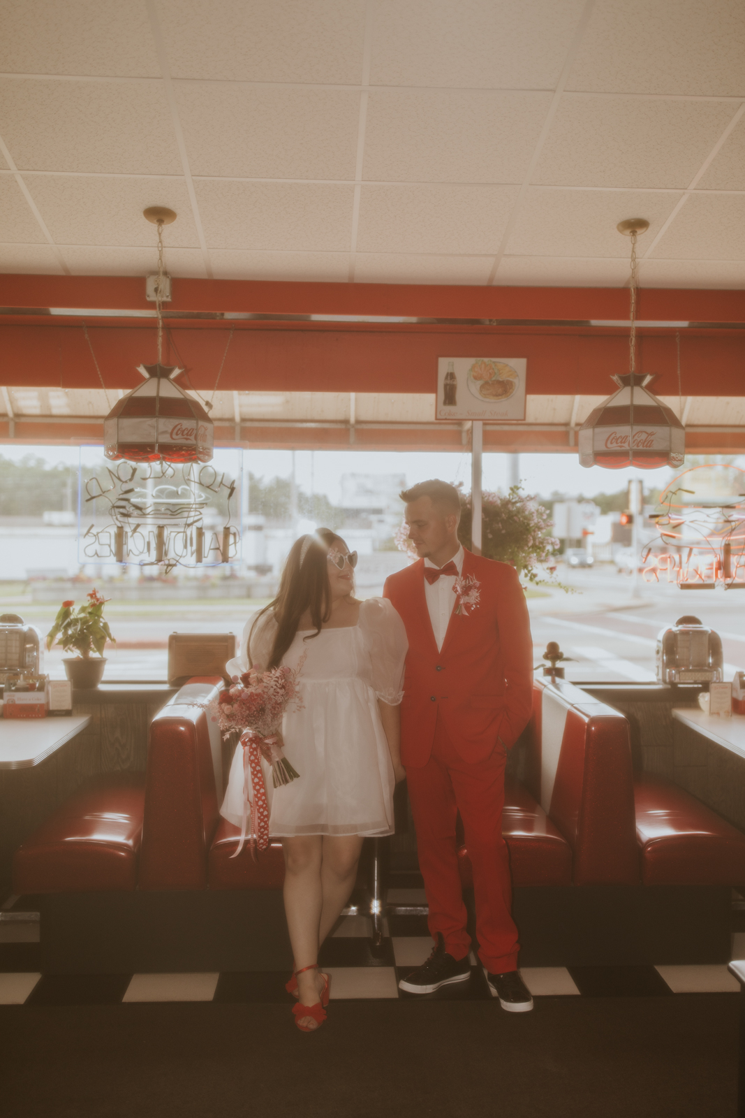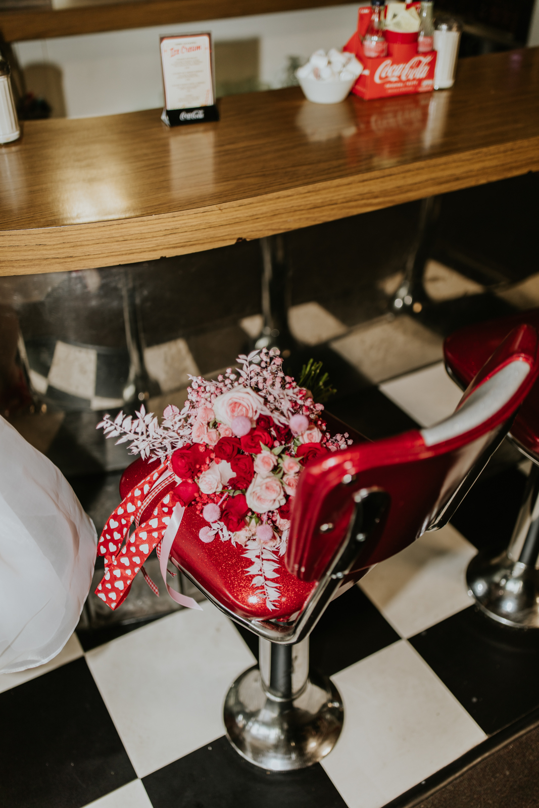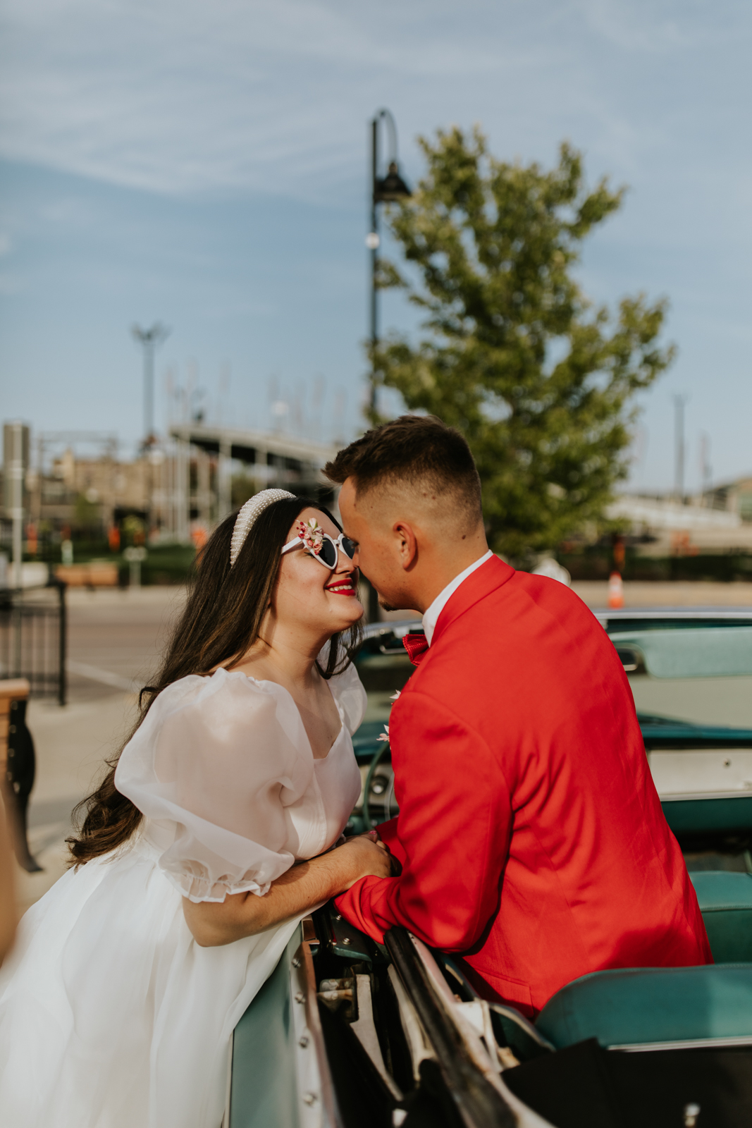 Rev up the jukebox and fasten your seatbelts for a wedding elopement design that pays a timeless tribute to the iconic 1950s! This Wisconsin Dells celebration is a blast from the past, seamlessly fusing ’50s flair, Vegas elopement extravagance, and vintage Valentine’s Day charm with bright reds, playful pinks, and kitschy heart details.