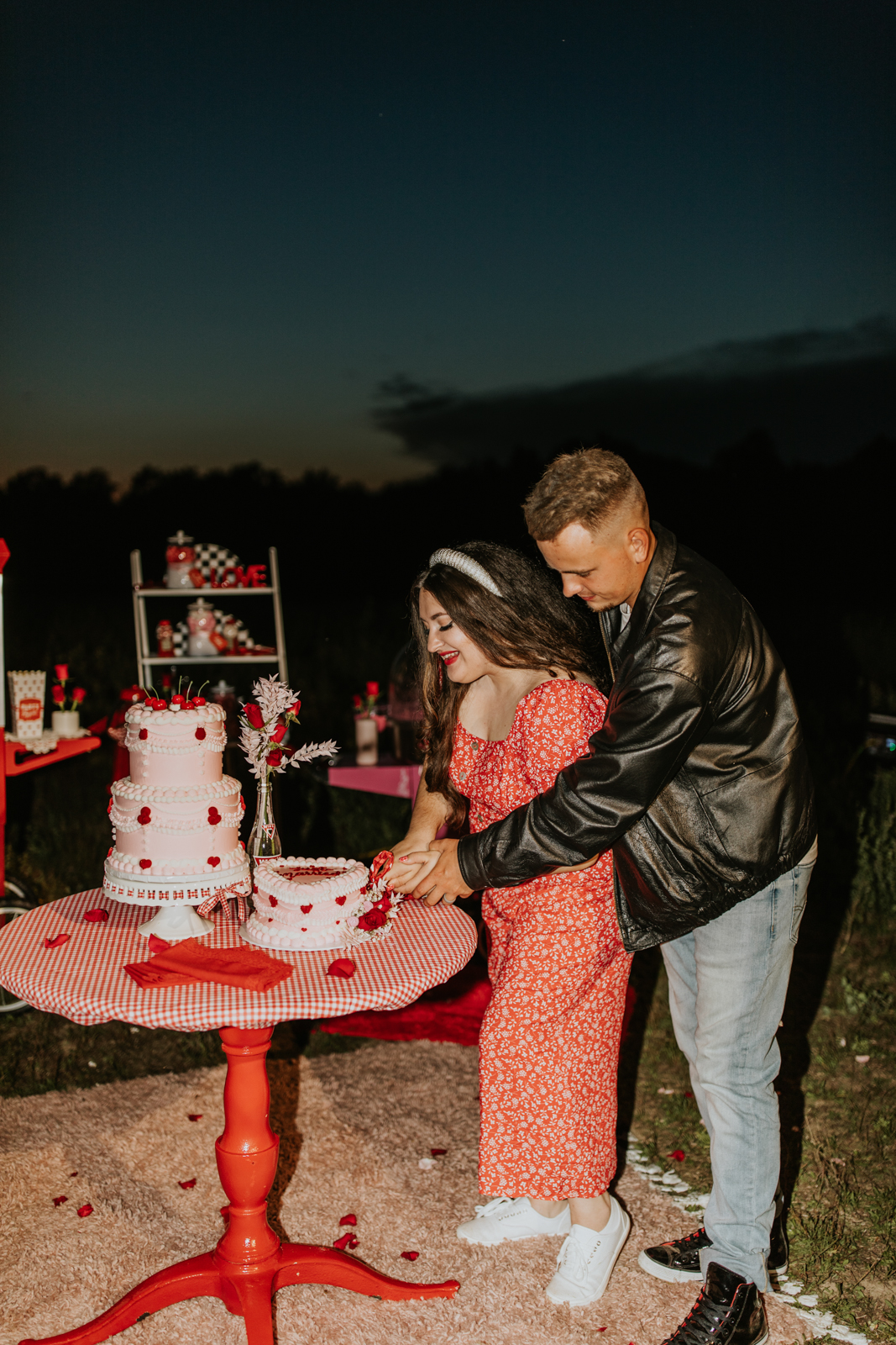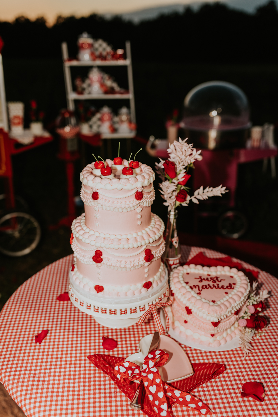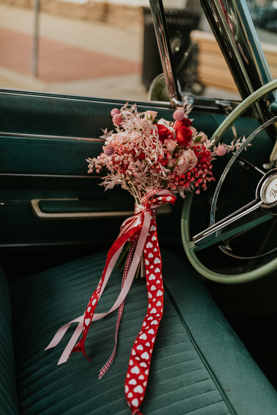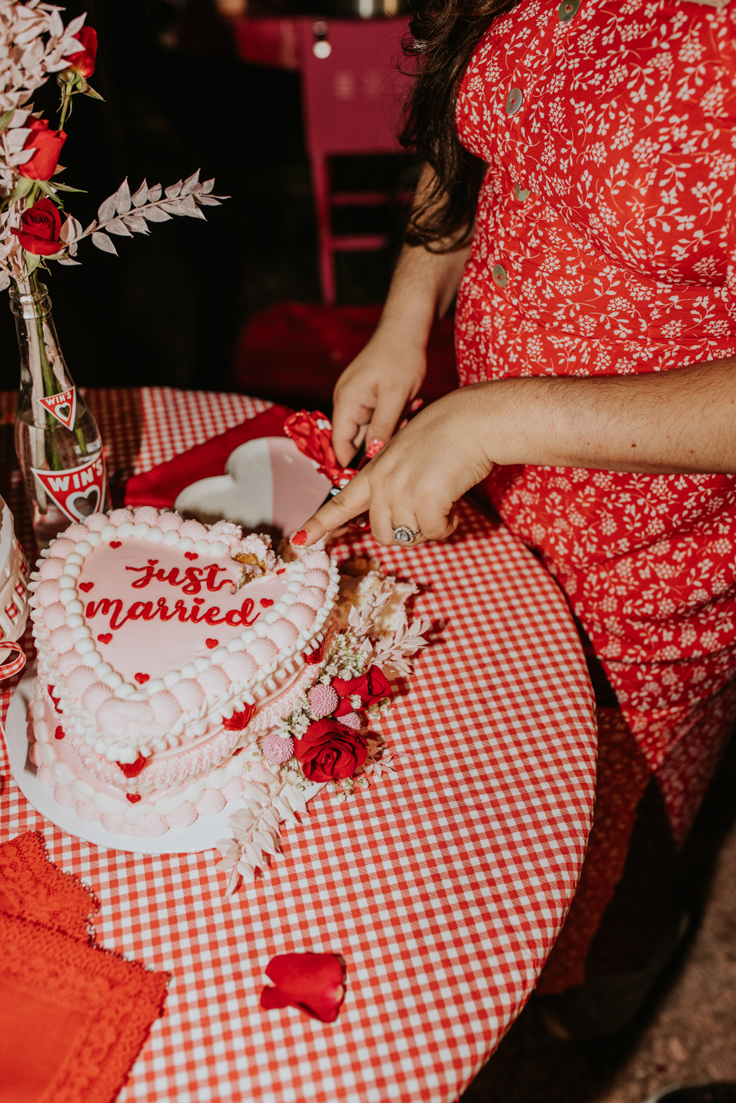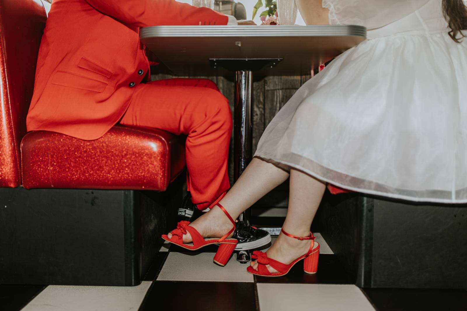 Rev up the jukebox and fasten your seatbelts for a wedding elopement design that pays a timeless tribute to the iconic 1950s! This Wisconsin Dells celebration is a blast from the past, seamlessly fusing ’50s flair, Vegas elopement extravagance, and vintage Valentine’s Day charm with bright reds, playful pinks, and kitschy heart details.