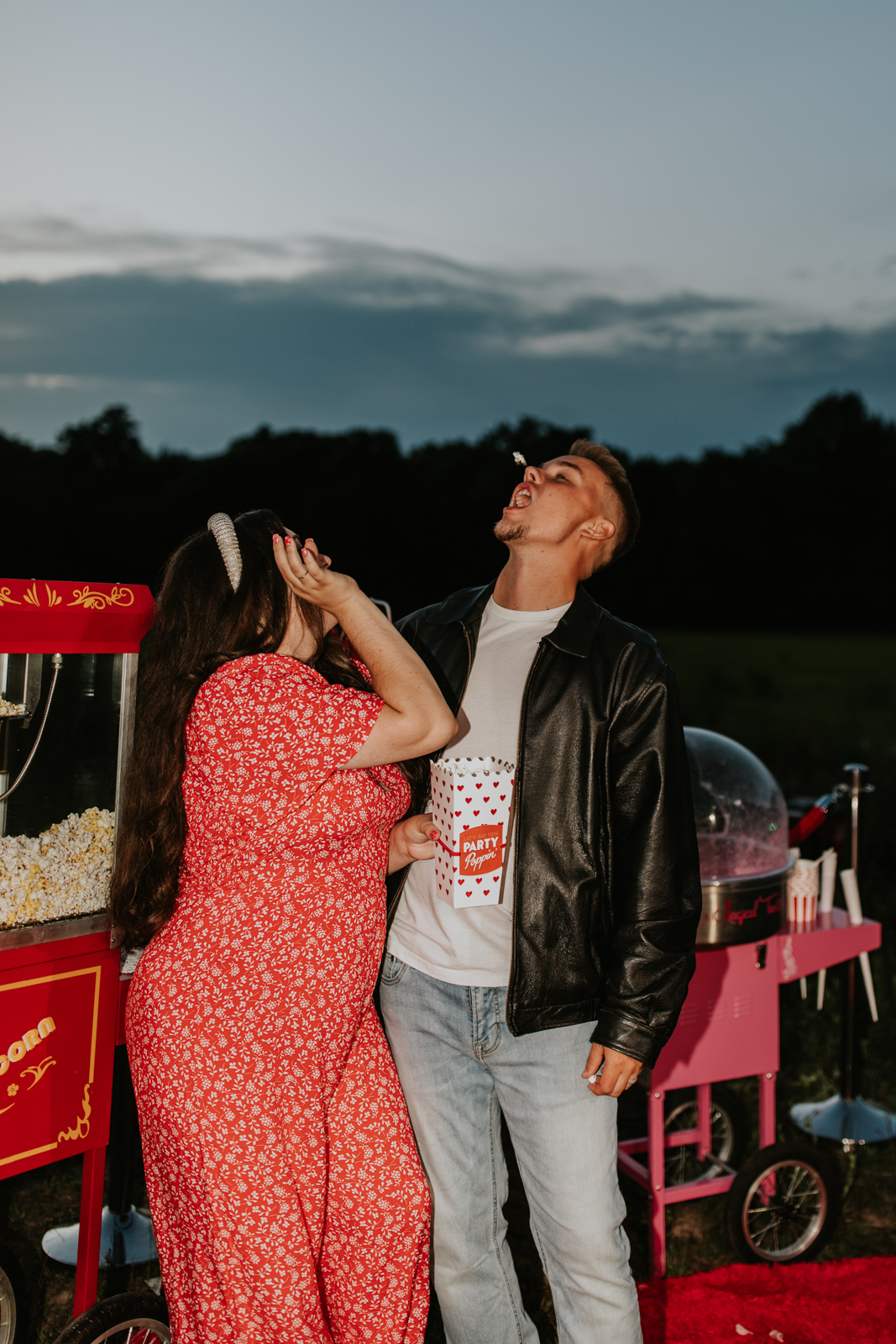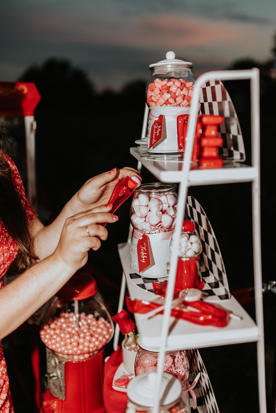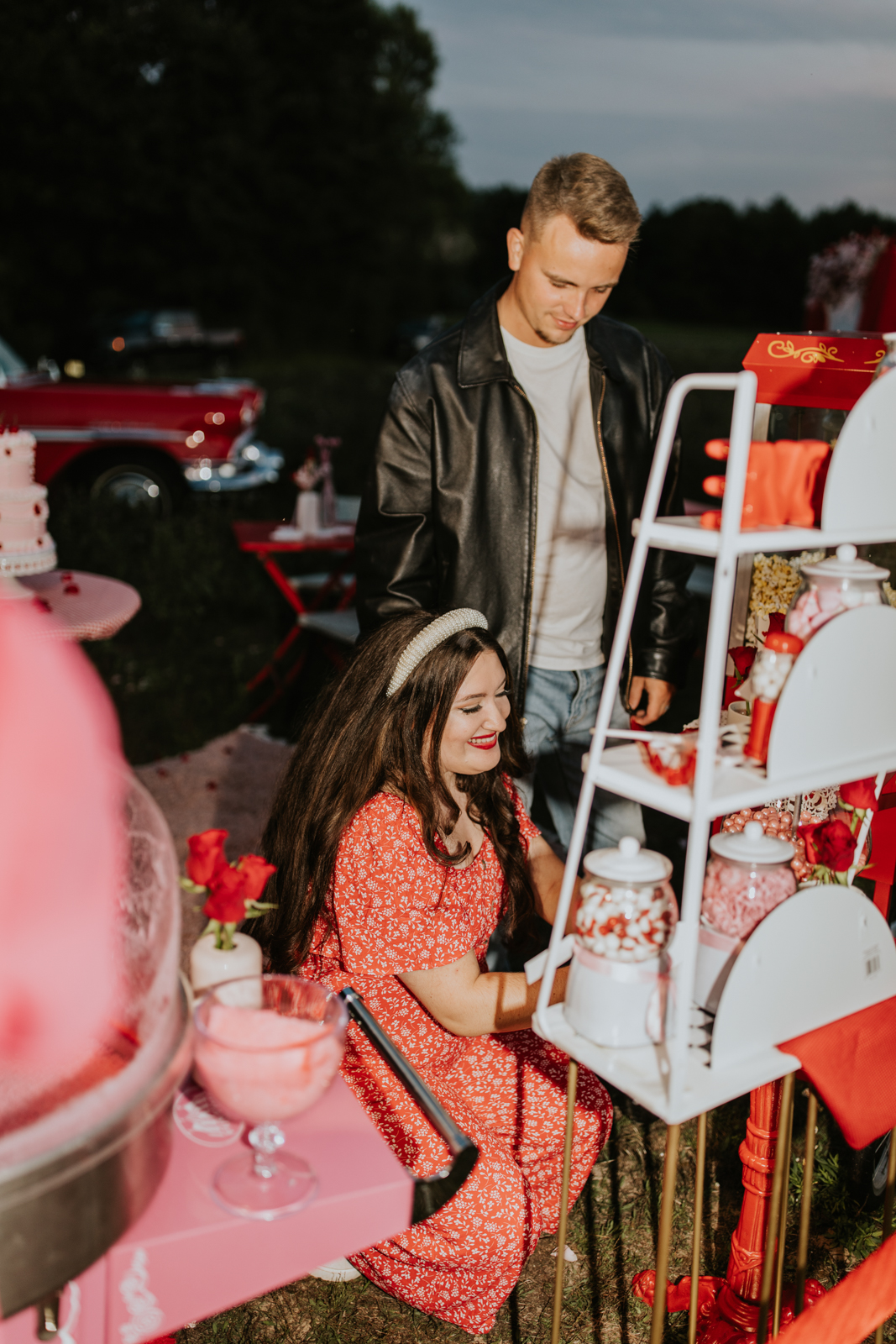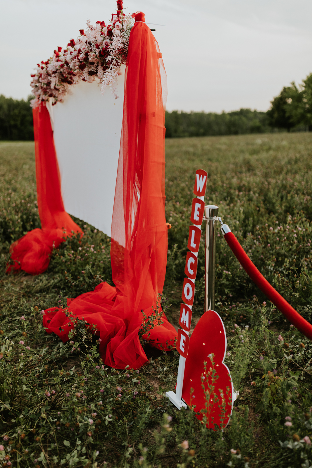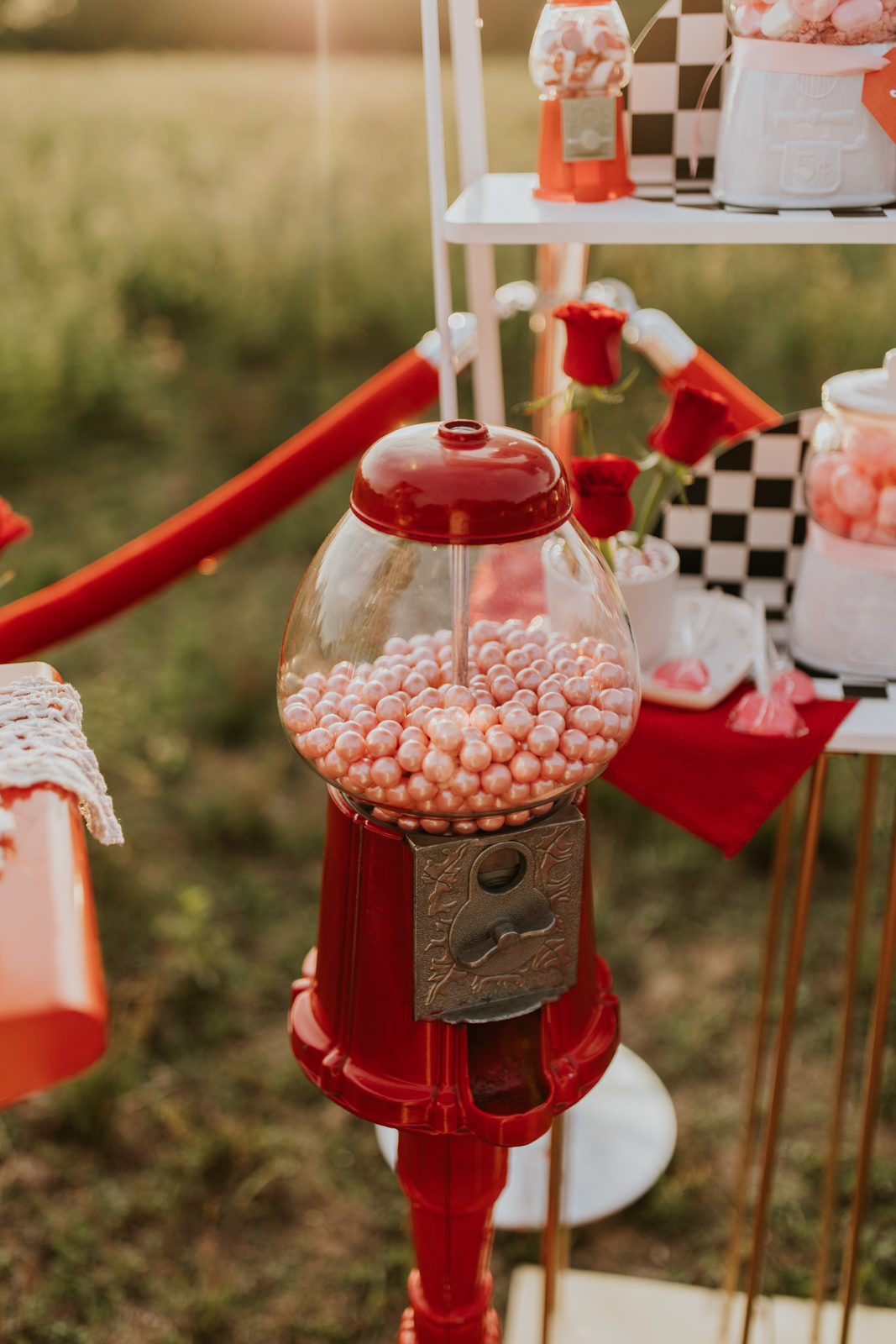 A drive-in experience isn’t complete without snacks! LK Bridal Studio designed a snack wall displaying custom snack boxes for Coca-Cola, fries, and popcorn for guests to enjoy! A large red, lit-up heart adorned the top of the display, featuring the couple’s names like the stars of a Hollywood film. From candy labels to a vintage welcome sign, vinyl decals, and so much more, LK Bridal Studio personalized this reception to perfection. Grab a bite, and let’s get this party poppin’!