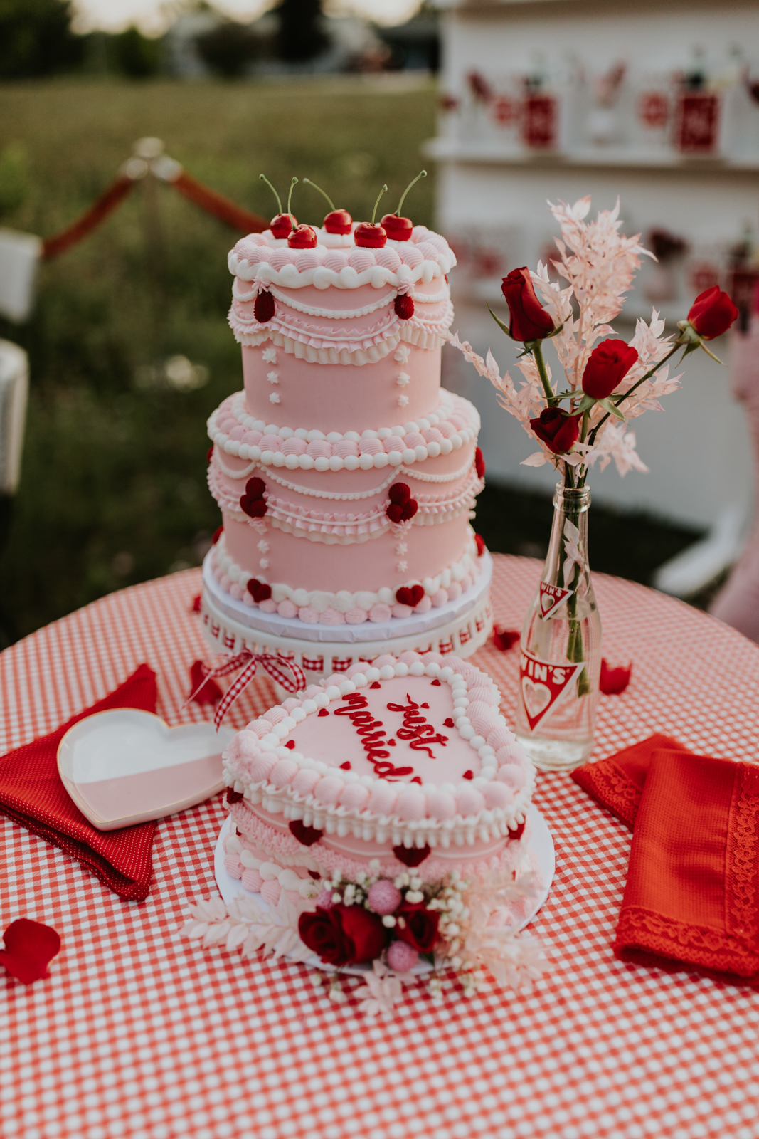 Kitchy vintage Lambeth cakes have made their comeback, and for good reason! Craig’s Cake Shop brought the perfect touch of nostalgia to this retro-inspired wedding with these maximalist-style cakes showcasing over-the-top details like ruffles upon ruffles and the delightful touch of cherries on top! Craig’s Cake Shop creates treats that are as memorable as they are mouthwatering, and these iconic cakes are no exception.