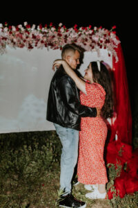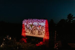 Tonight’s feature film? None other than the timeless classic, “Grease!” Celebrations Entertainment set the stage with stanchion posts and plush velvet ropes, complete with top-notch projection equipment that transformed the outdoor location into a drive-up paradise. With “You’re The One That I Want” serenading them, our couple danced the night away, capping off their perfect day with a touch of cinematic magic.