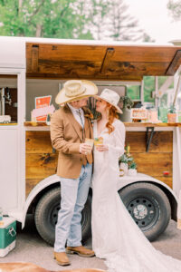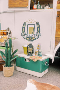 A lineup of mobile trailers and campers provided a variety of unique activities and entertainment to keep everyone engaged throughout the event. Cocktail hour kicked off with The Mane Tap, which served up a “Motel Cowgirl Margarita” and a selection of other refreshing beverages from their mobile horse trailer bar, perfectly capturing the southwestern spirit of the day!