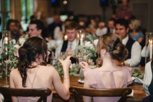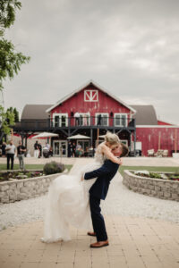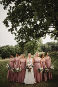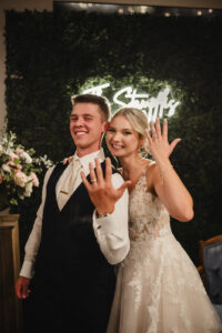 With the coordination and creative expertise of Signature Events, Sydney and Jaden’s vision of an elegant, garden floral celebration came to life at Vennebu Hill’s romantically rustic venue. The day was filled with personal touches, like a live painting of their ceremony by Brad Geers; Your Live Wedding Artist–a piece that now proudly hangs in their living room as a cherished memento. The surprises didn’t stop there; Bucky Badger himself made a spirited appearance on the dance floor, “jumping around” with the newlyweds and their guests, paying homage to their alma mater.