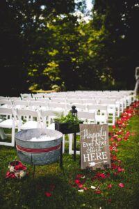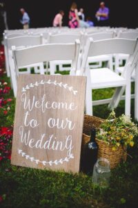 WERE THERE ANY PERSONAL TOUCHES OR DIY ELEMENTS? We had a lot of cute rustic signs that my bridesmaids wrote. We had different sizes of logs cut up and stacked with candles and rose petals which was super cute! I had a wooden ladder with beautiful flowers and beads hanging behind the wedding party table. The flower girl’s baskets were made of burlap, lace, and bows.
