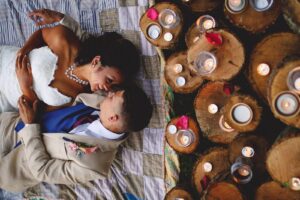 He parked in a parking lot with no cars and pointed to a building. Then he tells me to take off my jacket and I did not want to because it had to be the coldest day in October. It was so funny because I made a joke about if he was proposing and his face went numb but I didn’t think anything of it. As I got out of the car, he tells me to follow him down a path because he wanted to go for a walk as we are “early for reservations“ and so we continued down the path. I remember telling him I did not want to go because there were lights hanging and that someone could be there. He demanded we go check it out so we walked to this open barn house on top of a small bridge. That is when I saw all the pretty lights hanging down and all of our pictures lined up in the barn. So many candles lit up. I was so shocked and I remember all these beautiful rose petals on the ground in a row and then shaped into a circle at the end which was where I stood. I was looking at our pictures on the side and when I turned around, Caleb was on one knee with a beautiful ring. All I can remember him saying was “Sheng, you make me the happiest man alive…” as he was tearing up and then I went blank and started crying. Caleb’s best friend and a surprise photographer jumped out and congratulated us. It was honestly such an amazing moment in my life and I couldn’t thank everyone enough for helping.
