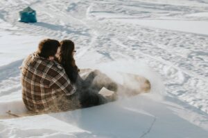 ing the family land, we thought it would be pretty to have a winter setting for our engagement pictures. One special detail was the picture of us sledding on the toboggan.