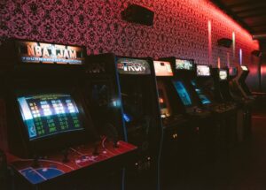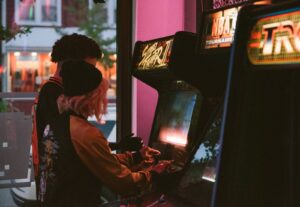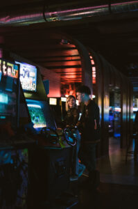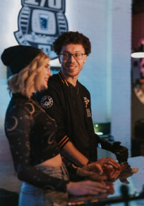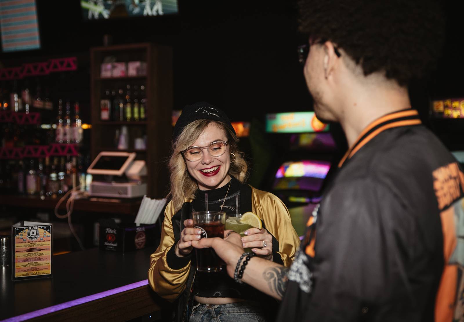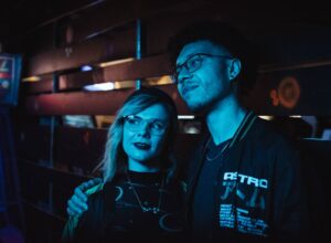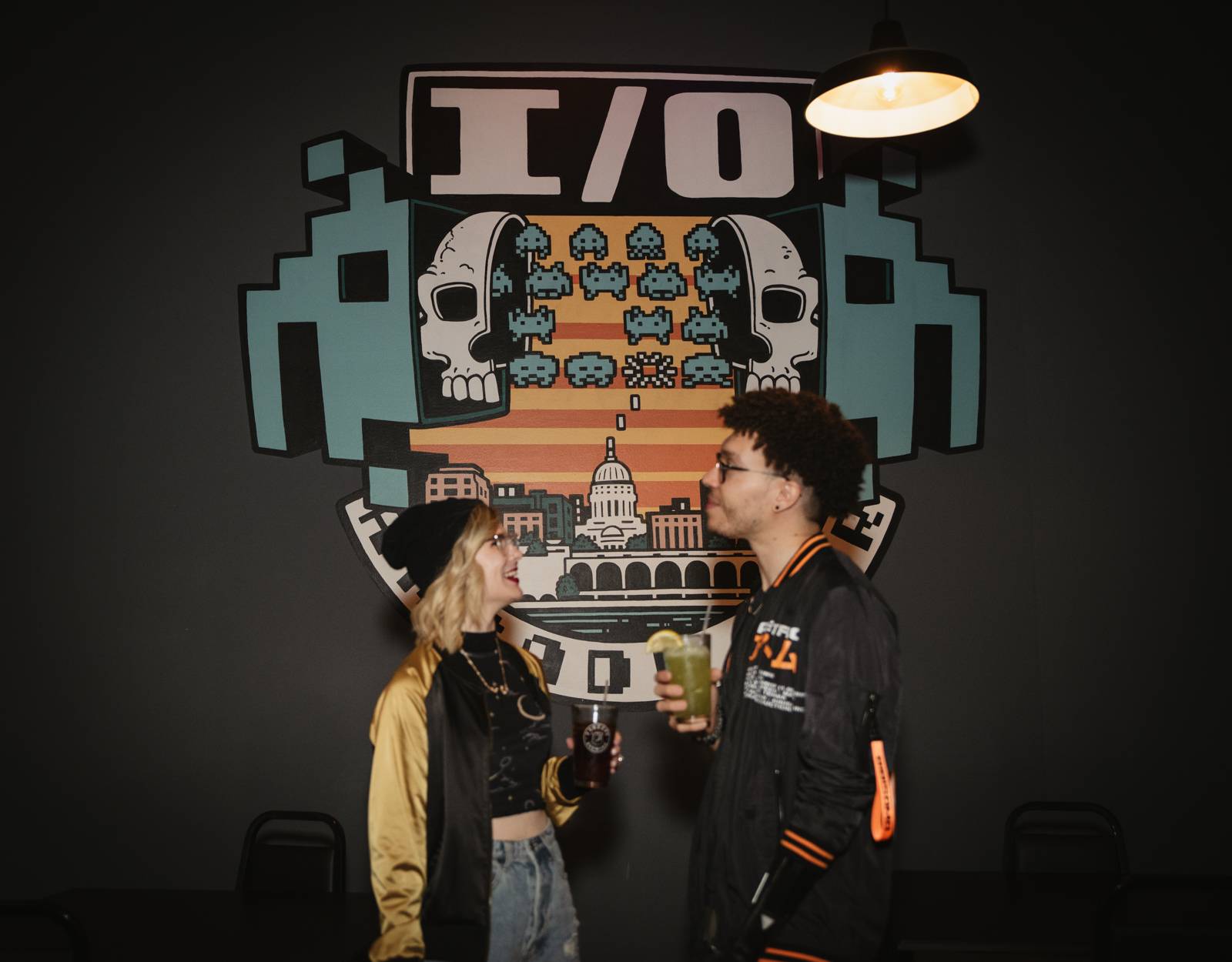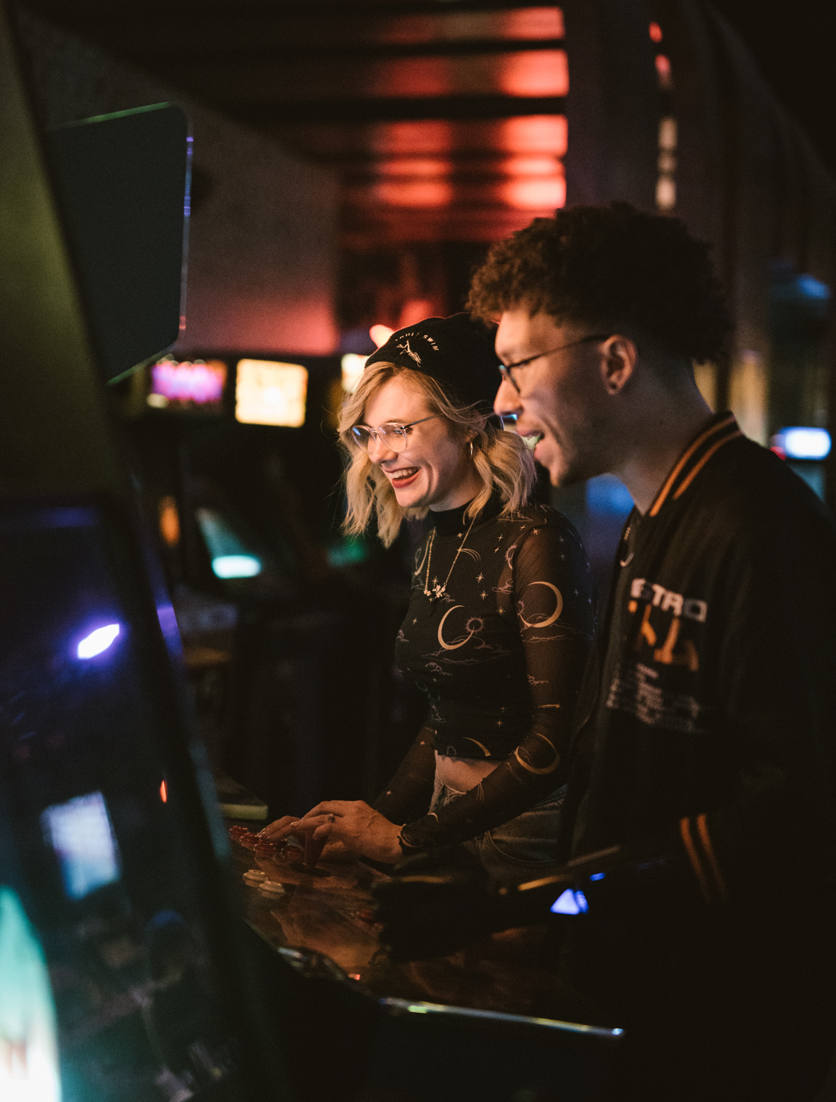 Self-proclaimed gaming and comic book nerds Alicia and Brian celebrated their love and engagement with a unique and vibey photo session in downtown Madison, Wisconsin. I/O Arcade Bar was the perfect location offering a chill space in a refurbished warehouse on Willy Street with craft beer, retro arcade games, and pinball. Captured by Valerie Halling Photography, the fun lights of the arcade paired with this couple’s vibrant street style made for a totally one-of-a-kind engagement shoot we know you’ll love below!