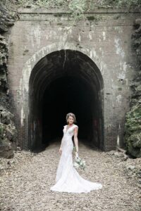 DESCRIBE YOUR WEDDING FLOWERS: Blueberries, thistles, eucalyptus, tea roses, succulents with my paternal grandmother’s wedding tiara incorporated into the bouquet.