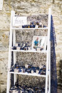 WERE THERE ANY PERSONAL TOUCHES OR DIY ELEMENTS? We had favors for the guests that my parents made including honey jars with “Meant to Bee” tags and lace design, mason jars with personalized names for stops at the “Hop Garden” – the microbrewery on site, and wooden blocks to serve fruit kabobs. My mother constructed a display out of my great-grandmother’s antique dresser to display wedding pictures from our parents, grandparents and sibling’s weddings. Also, my 98-year-old grandmother’s wedding tiara was incorporated into my bouquet.