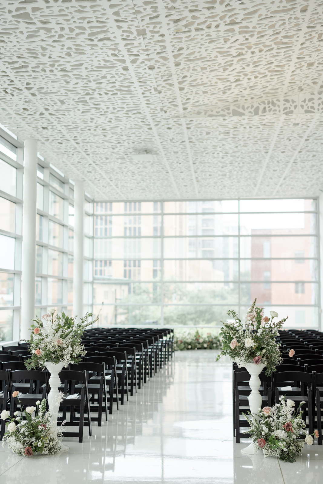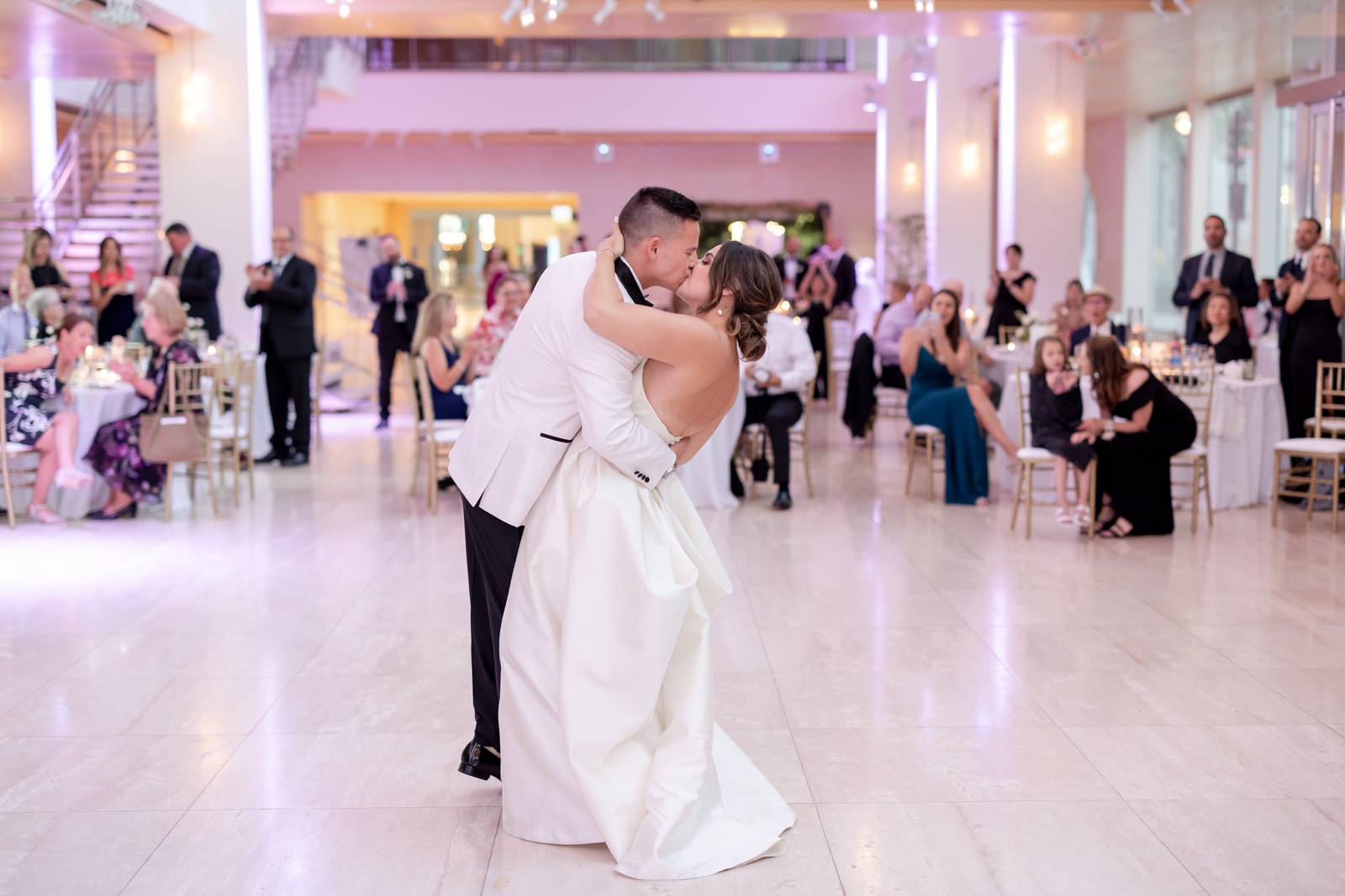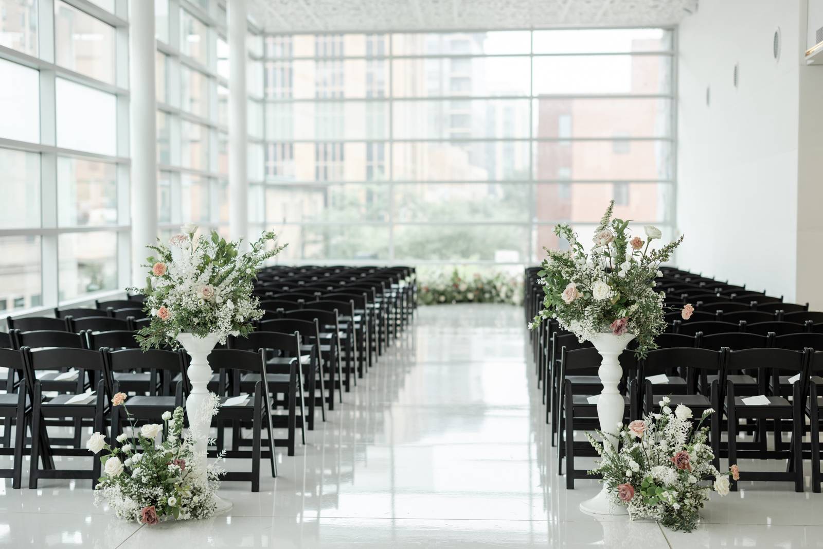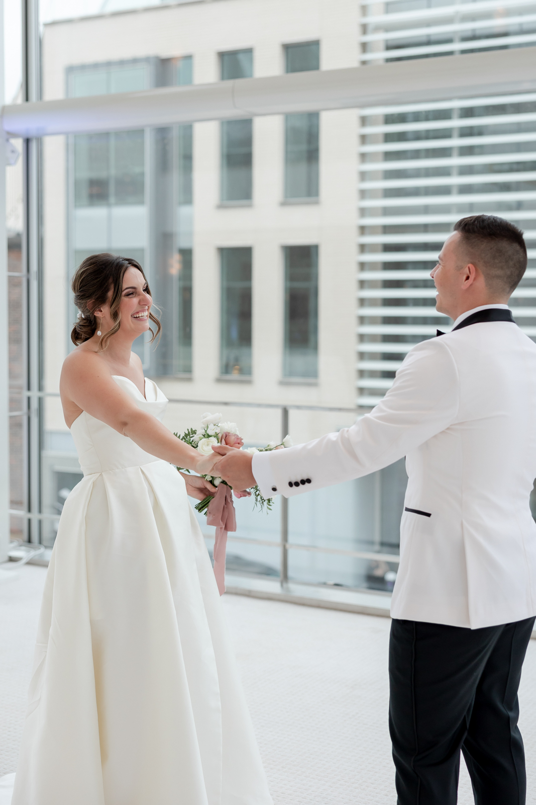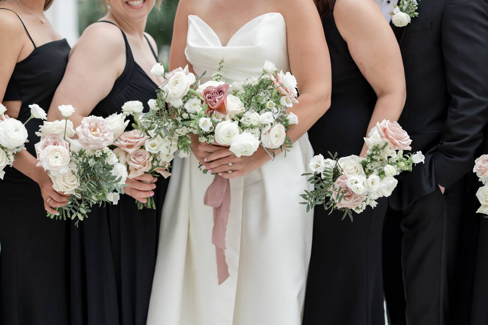Kelsey and Zach’s classic enemies-to-lovers story unfolded on a stunning June wedding day at Madison’s Overture Center for the Arts. Against a timeless backdrop of sleek white, black, and gold details, their special day was pure elegance surrounded by romantic mauve and blush-toned garden florals and the joy of their loved ones! Their ceremony at the Madison Public Library featured a stunning grounded floral nest from 1209 Creative that seamlessly transitioned right across the street to the Overture Center lobby to surround their sweetheart table during the reception.