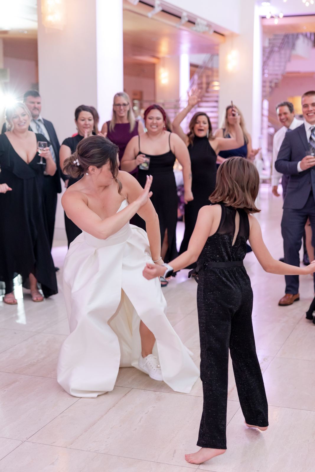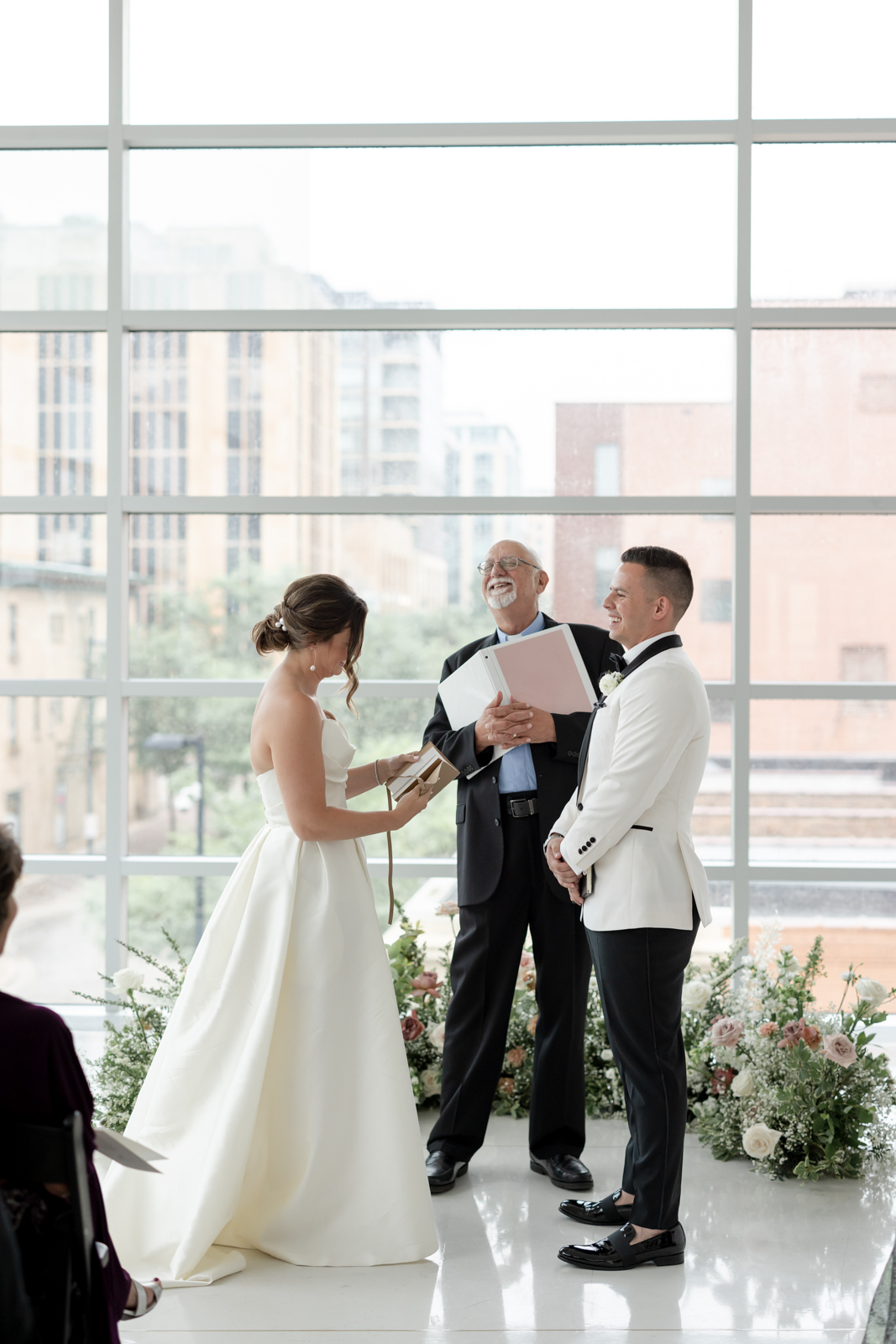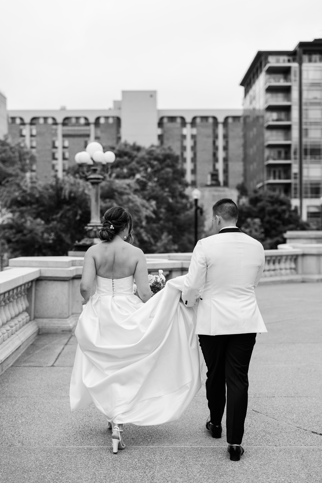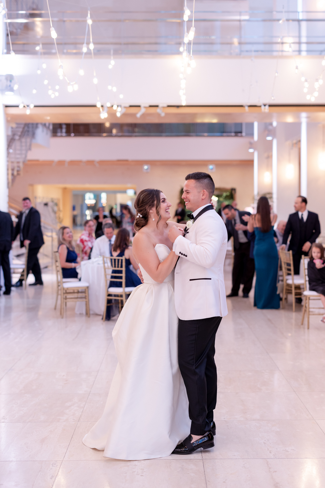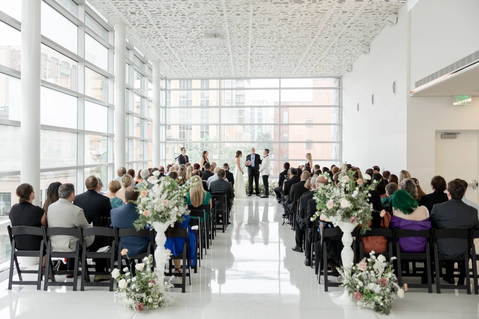 Kelsey and Zach’s classic enemies-to-lovers story unfolded on a stunning June wedding day at Madison’s Overture Center for the Arts. Against a timeless backdrop of sleek white, black, and gold details, their special day was pure elegance surrounded by romantic mauve and blush-toned garden florals and the joy of their loved ones! Their ceremony at the Madison Public Library featured a stunning grounded floral nest from 1209 Creative that seamlessly transitioned right across the street to the Overture Center lobby to surround their sweetheart table during the reception.