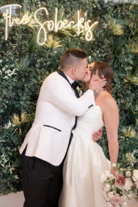 Modern rentals from Event Essentials created a clean and classy ambiance for the celebration, including a cozy lounge seating area enjoyed by guests as they visited during cocktail hour. Although the couple joke about not getting along in the beginning, their love grew slowly into the magical feeling we see from their day. Explore all the inspiring and swoon-worthy details below!