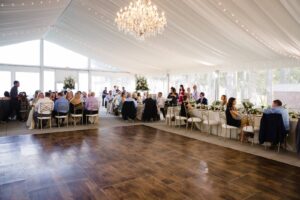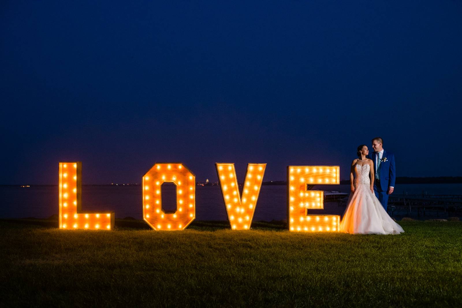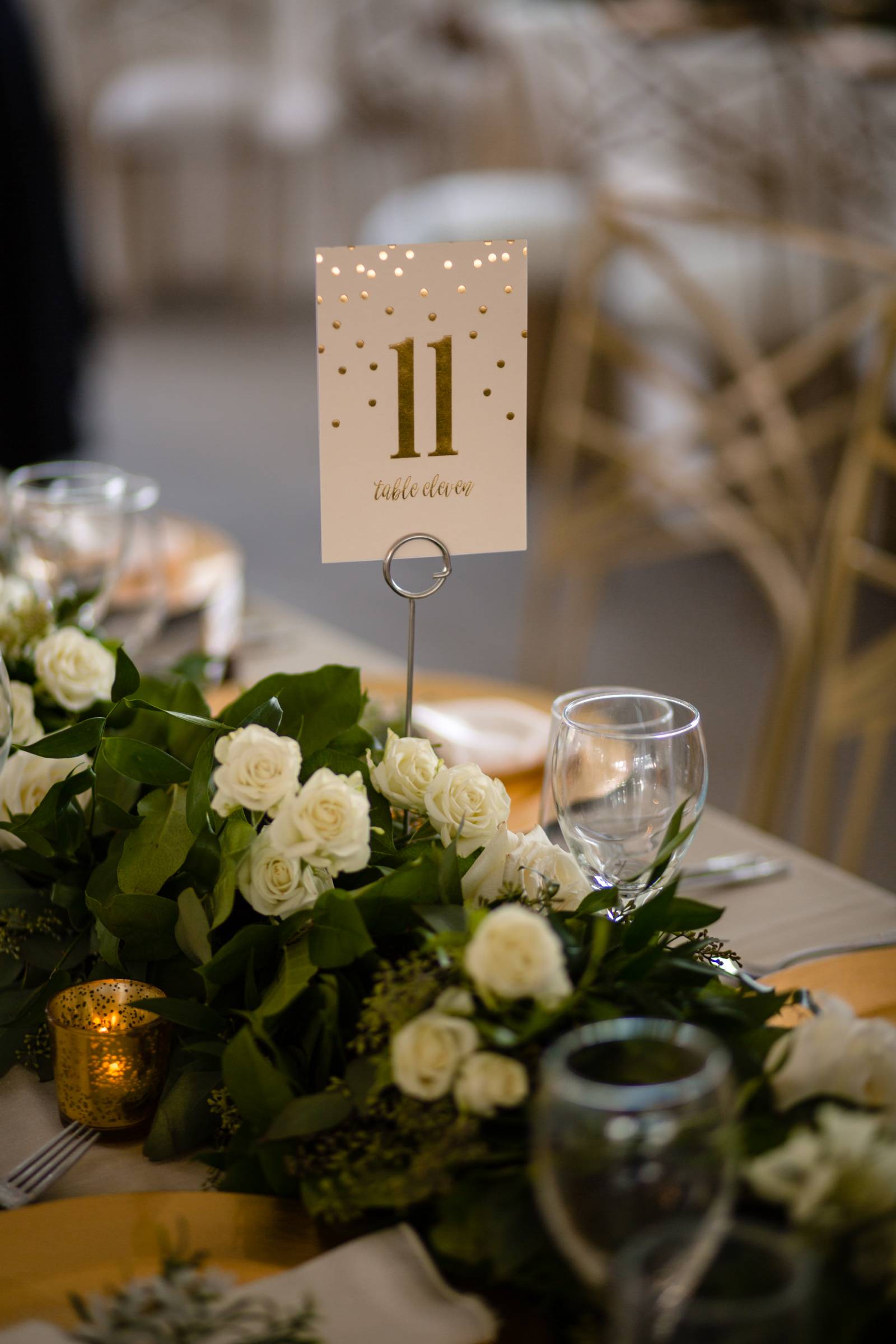 You know what will never, ever go out of style? An elegant white and gold color palette. That beautiful combo fits right in with everything and in this case, a stunning waterfront affair at Madison wedding venue, Bishops Bay Country Club. Beneath a beautiful outdoor tent with glistening chandeliers, gorgeous garden florals designed by Momentum Floral, calligraphy wood signs and modern gold chairs from Event Essentials – it’s a midsummer night’s dream. See this gallery of images from behind the lens of Ilana Natasha Photography all right here.