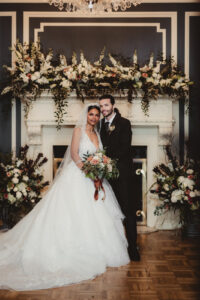 Scott Ellingboe of Hy-Vee Floral Fitchburg crafted lush, neutral floral arrangements that perfectly complemented the timeless elegance of the wedding design. The ceremony featured a statement arrangement centered around the fireplace, creating a beautiful backdrop of blooms for both the “I dos” and cherished family photos. The bride’s bouquet predominantly featured soft hues of quicksand, blushed rose, toffee, and terracotta. Also accented with eucalyptus for a subtle, natural touch, the bouquet enhanced her bridal gown without overshadowing it.