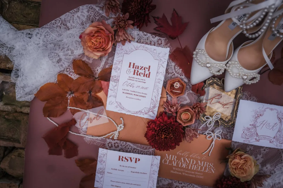 Fall is the season of change, marked by colorful leaves, crisp mornings, and the warmth of the upcoming holiday season. While fall weddings are often imagined as rustic (and we love a rustic wedding!), this Autumn Allure editorial at Guilded Grey Events, styled by Melody Rose Designs, takes a different approach. This editorial combines autumn’s signature colors with vintage design, modern accents, and romantic details, showing how the season’s warmth can be celebrated in a new way.