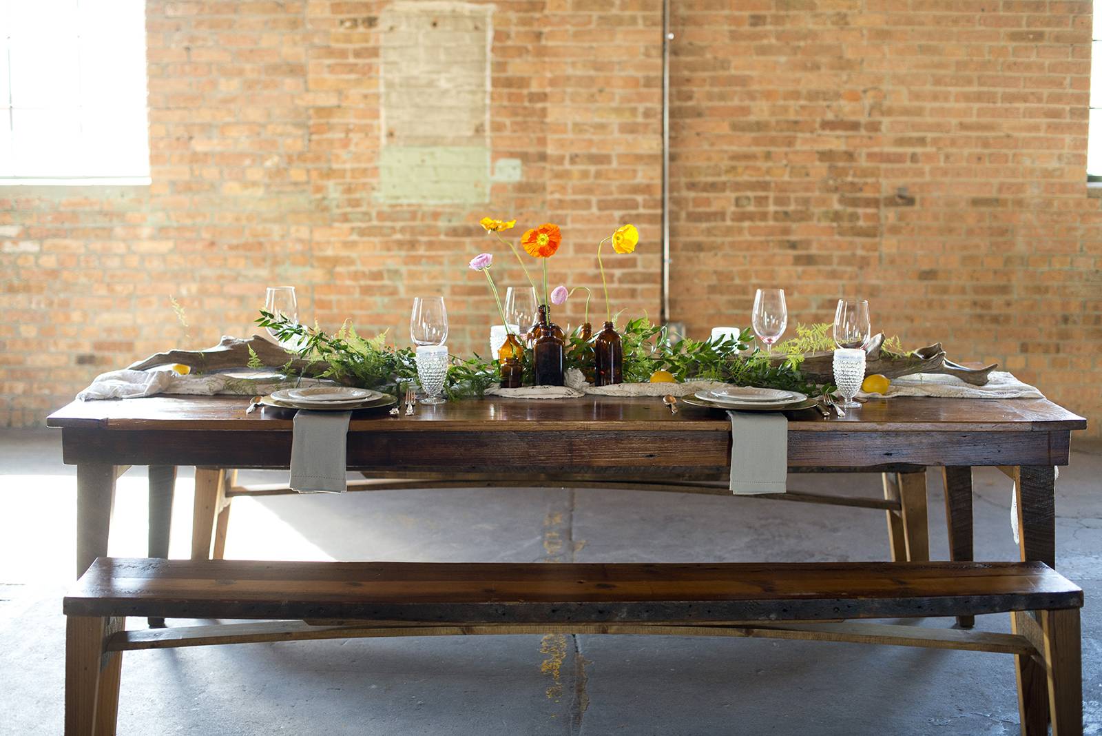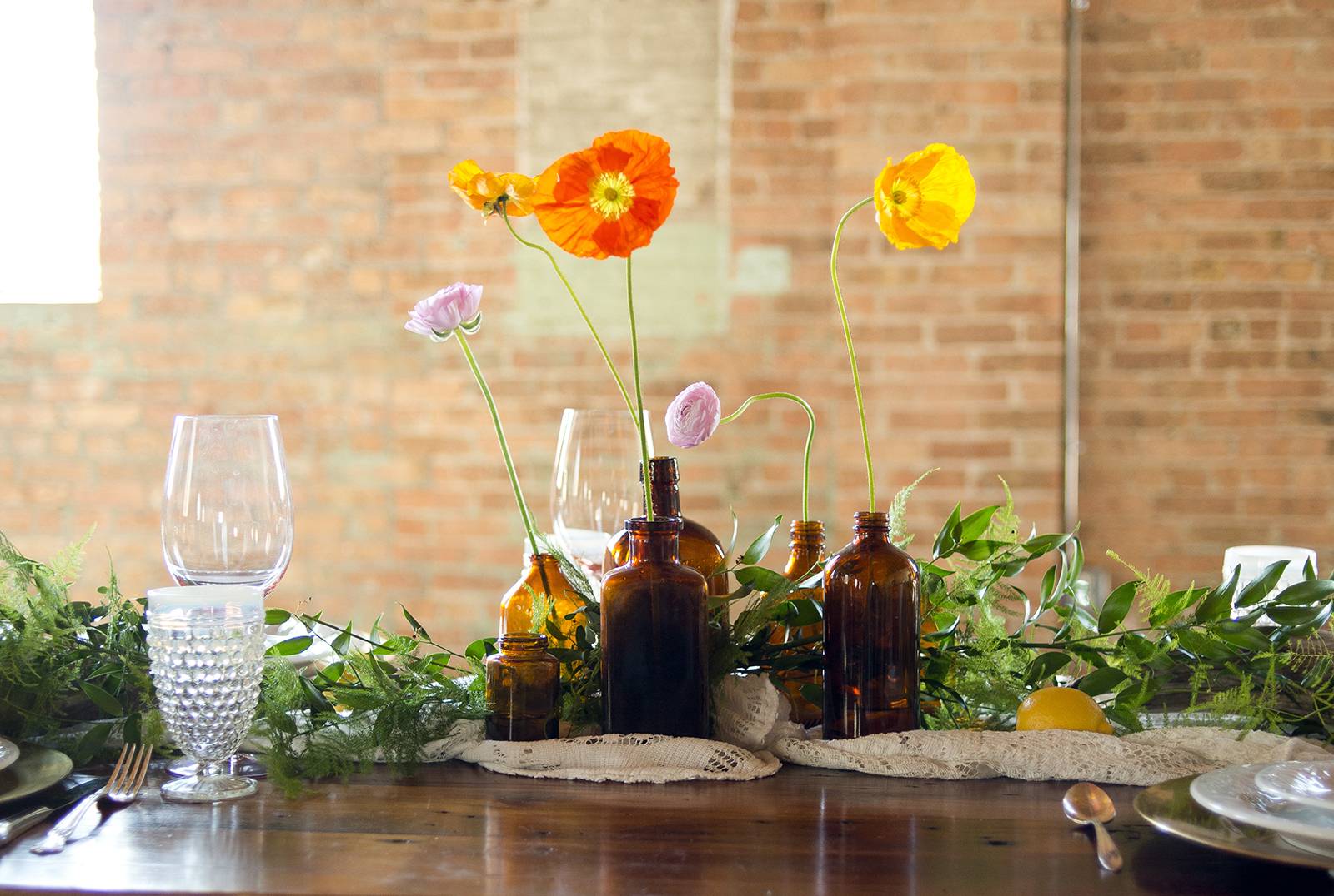 Thanksgiving is upon us, and as the temps get chillier here in Wisconsin, it's time to gather around and feast with our loved ones. And this fall shoot will warm you right up with its harvest layers, a rustic wood table & benches, amber glass bottles, to vintage china and simplistic beautiful autumn colored blooms. Set at a historic building in the heart of downtown Baraboo at the Baraboo Arts Banquet & Convention Center, see more of this coziness from Victoria Matteo Photography.